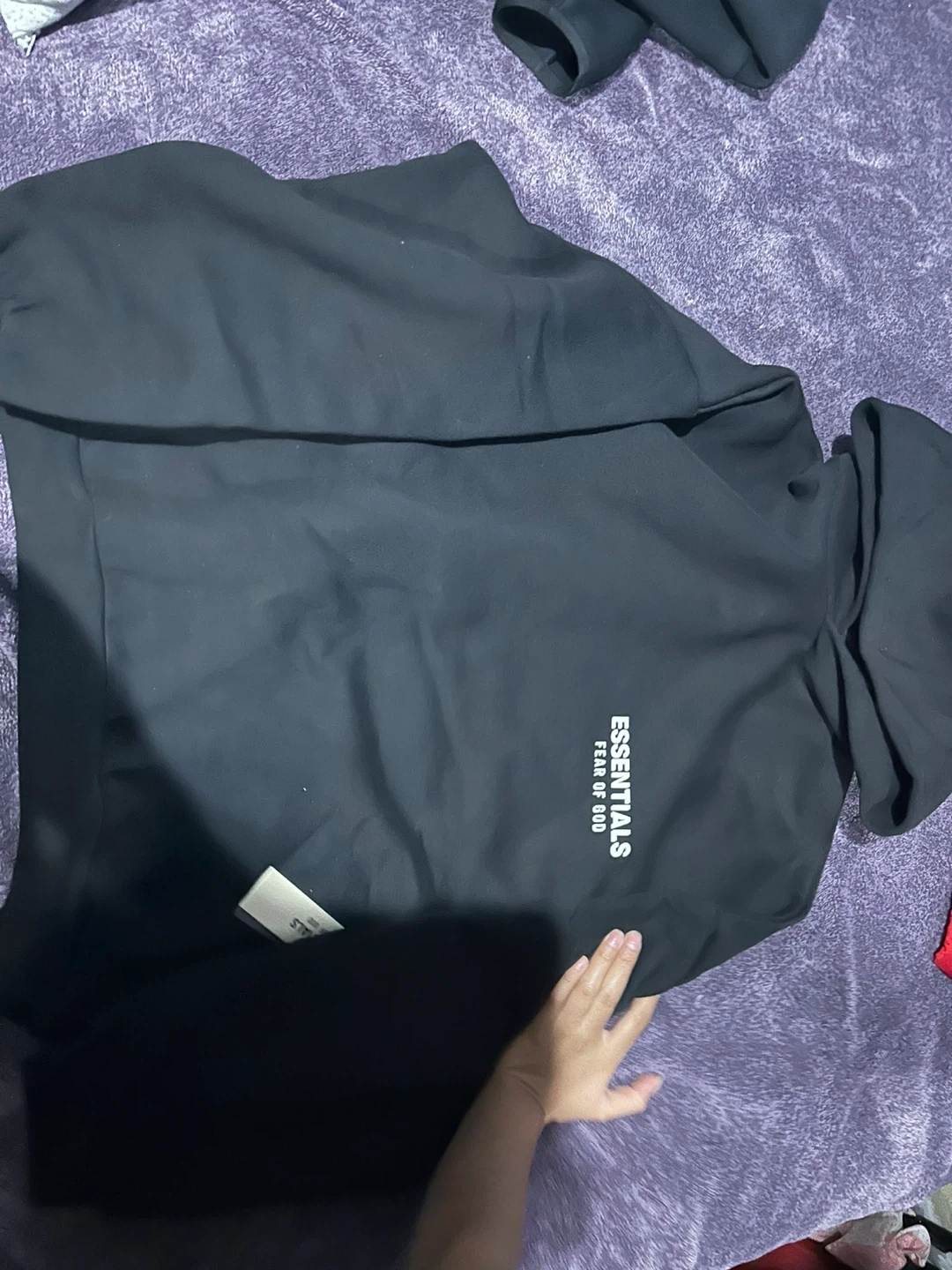 Selling a black Essentials Fear of God hoodie in size XS. But it’s more like a Small. It's in great condition and ready for a new owner! The material is soft and comfortable, perfect for everyday wear.