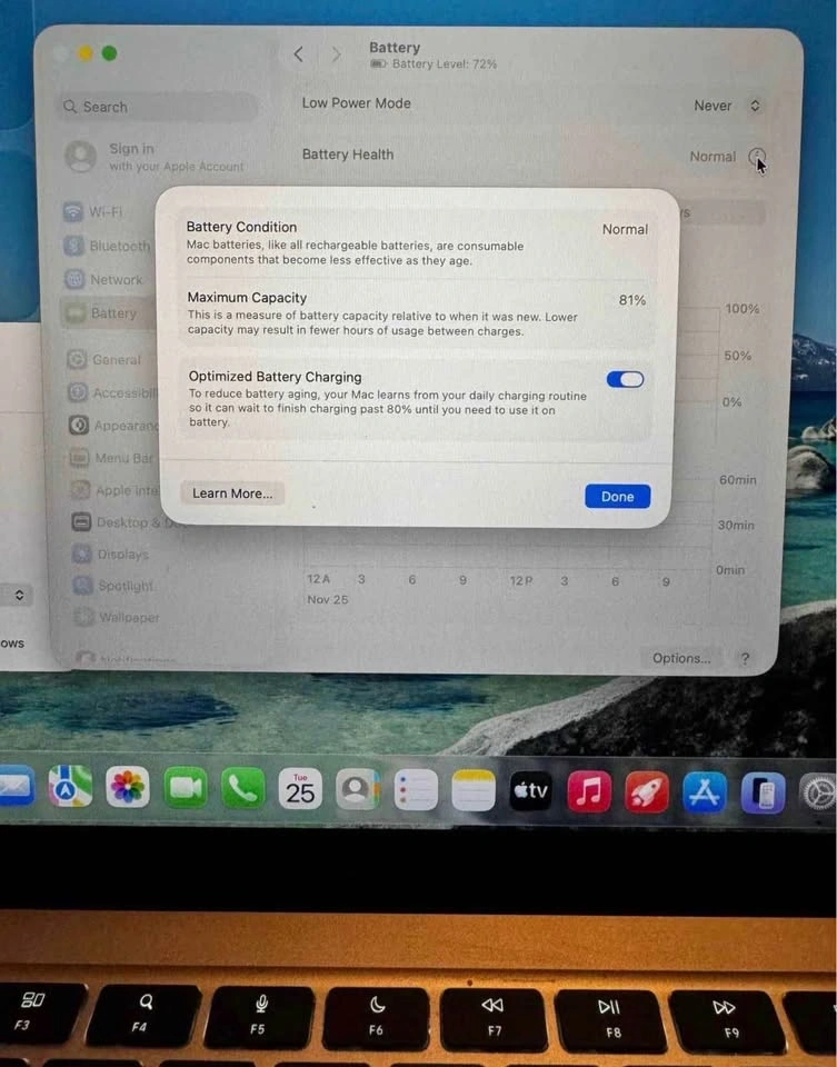 Battery health is excellent.