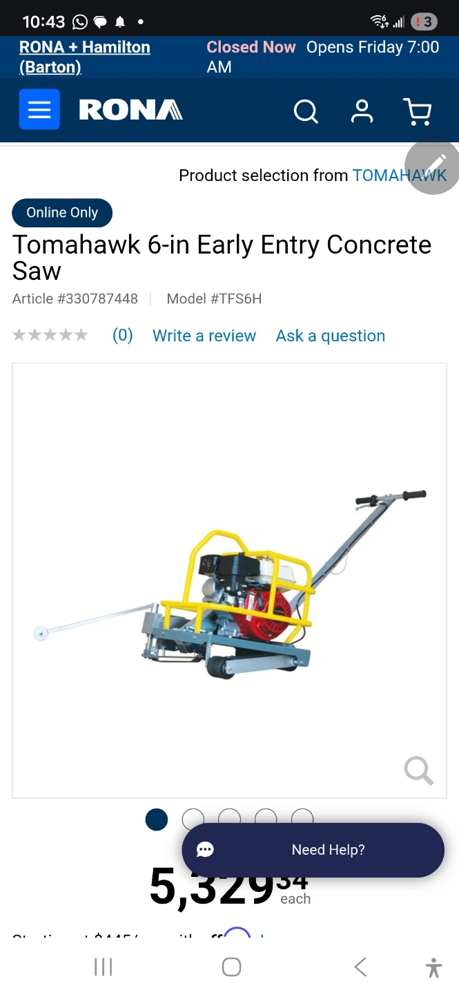 1 / 41 / 4Buy & SellTomahawk TFS6H Concrete Saw - NewTomahawk TFS6H Concrete Saw - New$1,350Selling a brand new Tomahawk 6-in Early Entry Concrete Saw, model TFS6H. It's in perfect condition and ready for use!ConditionNewWHERE TO MEETgageView MapSELLERverifiedJosephE Mountain Area692 reviews0 chats·0 favorites·14 viewsSEND CHAT TO SELLERHi Joseph! I’m interested in your listing.Hi Joseph! I’m interested in your listing.Get the Karrot app to chatSign In to chat