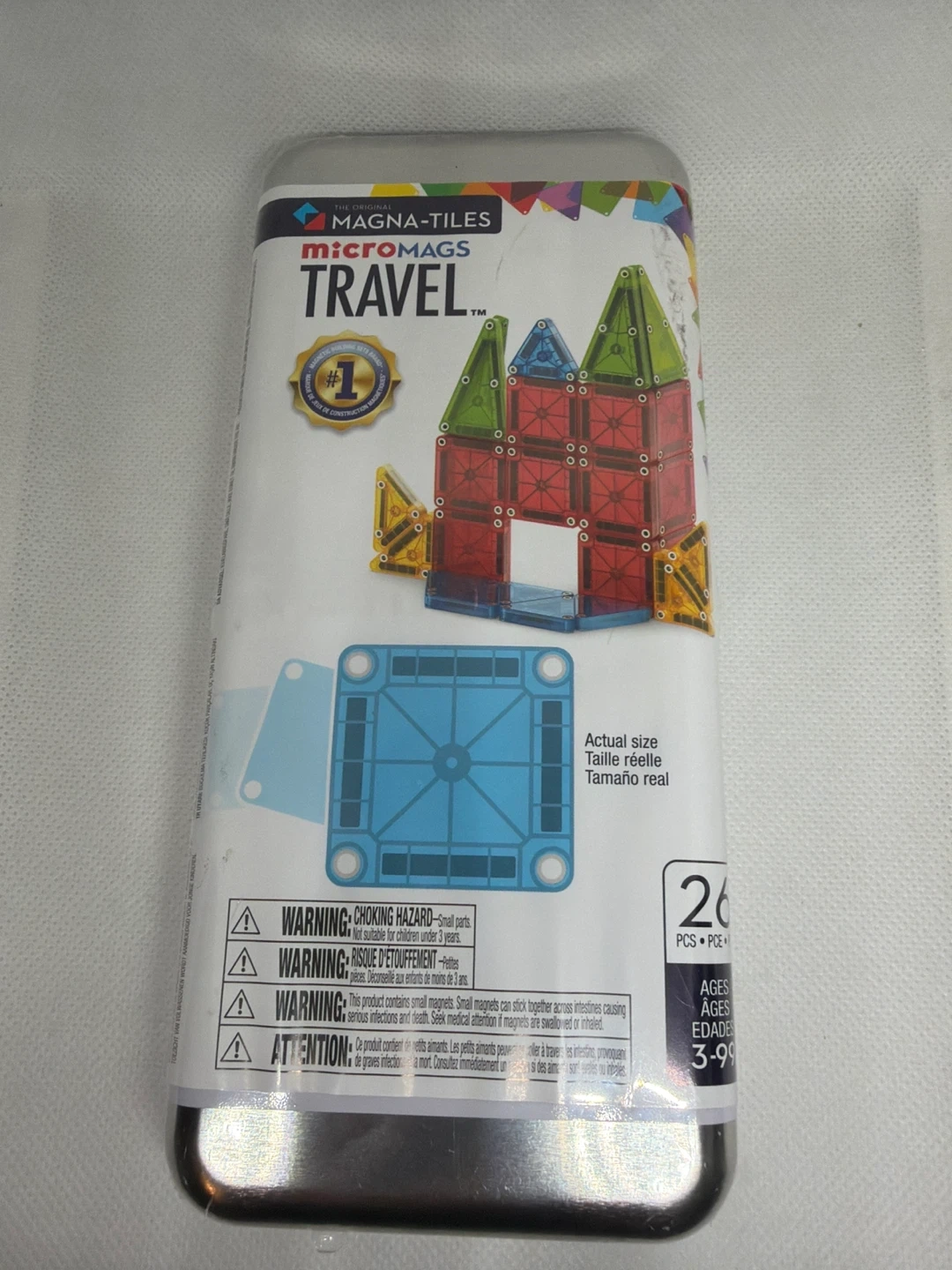 Selling a Magna-Tiles MicroMags Travel set! It comes with 26 pieces and is great for ages 3-99. Perfect for travel and on-the-go fun!