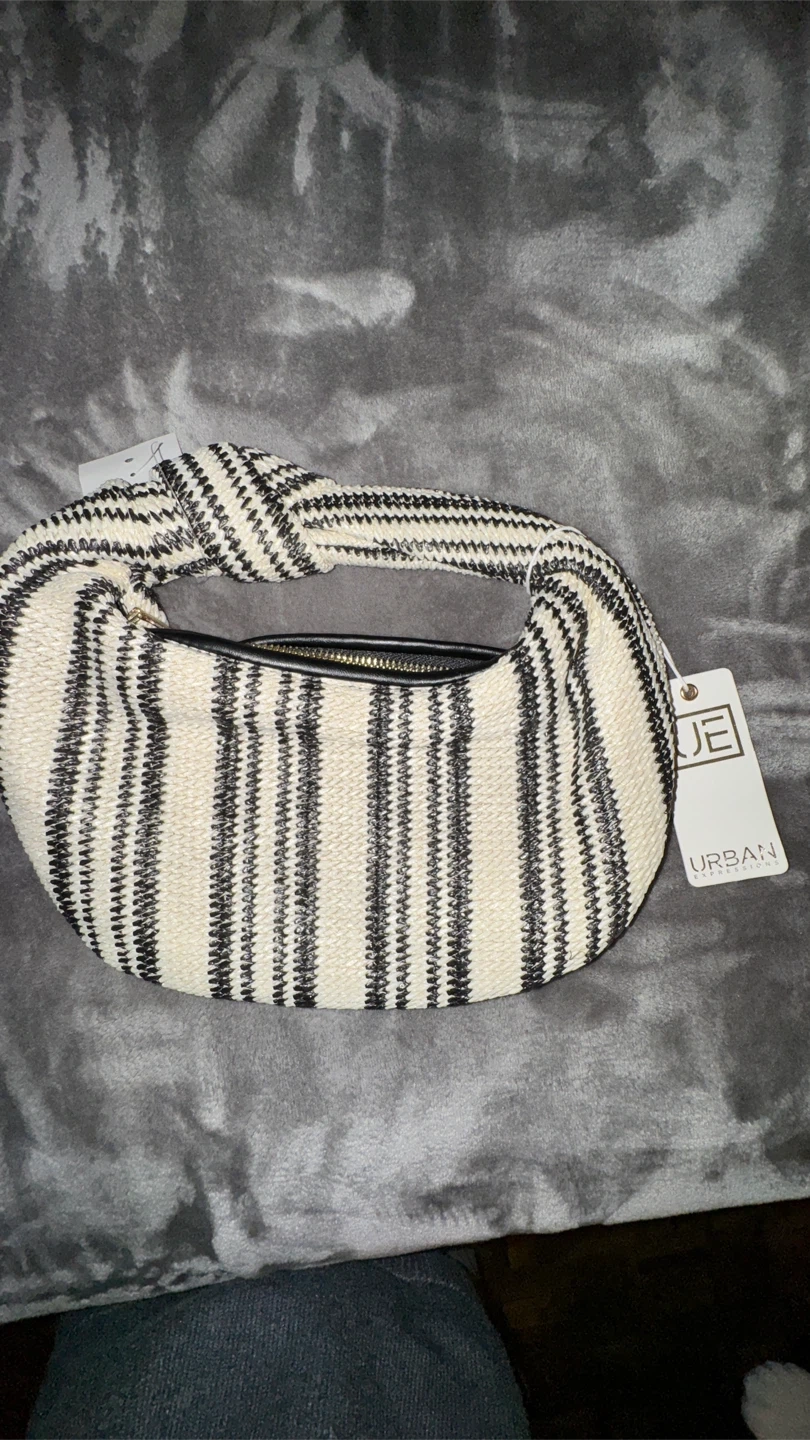 This Urban Expressions bag is in black and ivory. It's a woven design that's perfect for adding a touch of texture to any outfit. The bag is new with tags!