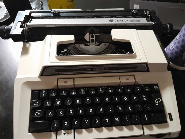 Smith corona electric typewriter model 6E. Purchased 1984. Don't know the year of the actual typewriter. It turns on but not sure if it works properly. Comes with hard carrying case. OBO