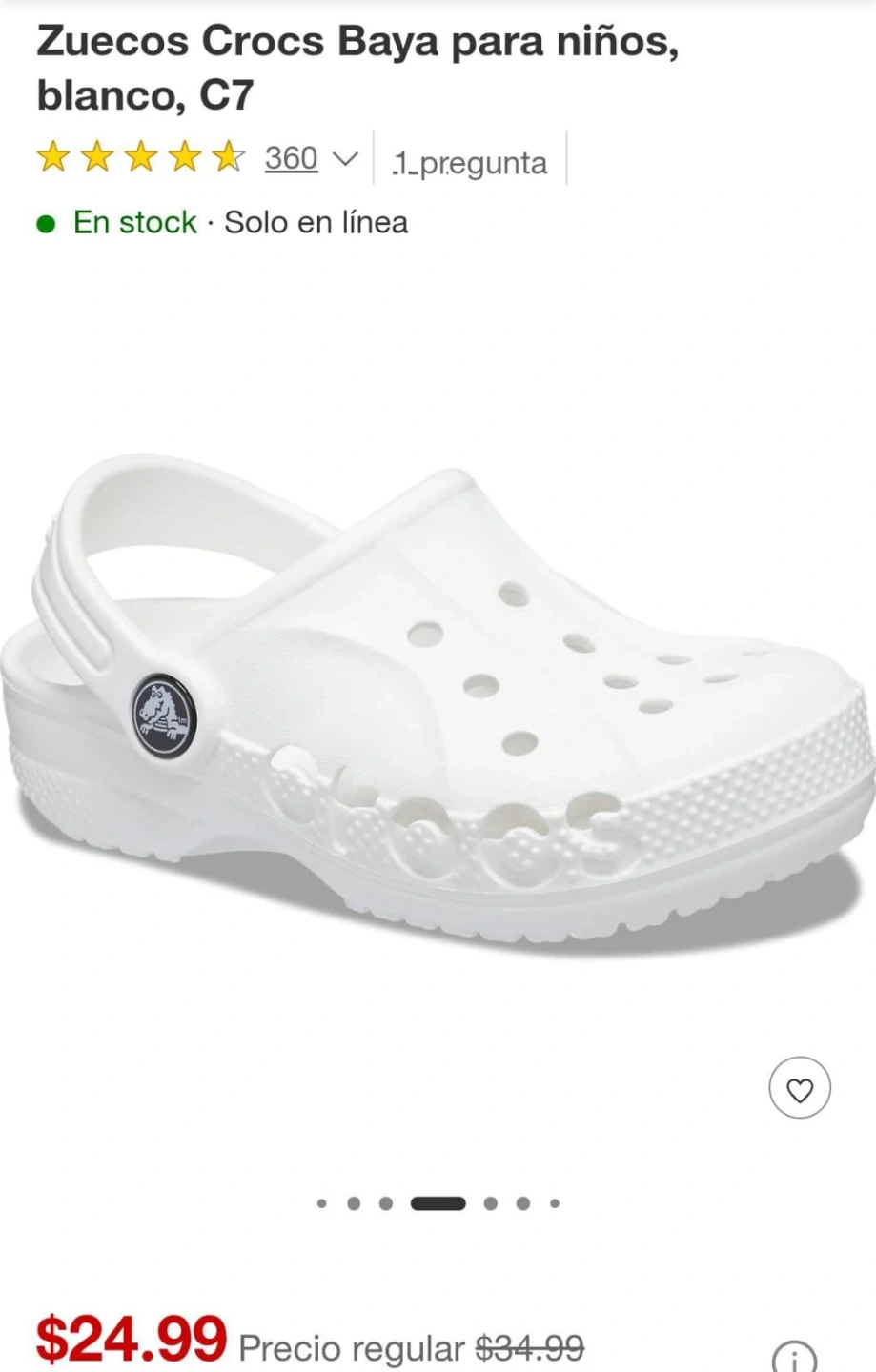 Selling a pair of Crocs Baya for kids in white, size C7. These are super comfy and easy for kids to slip on and off!