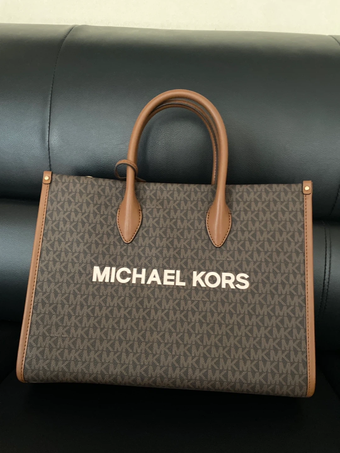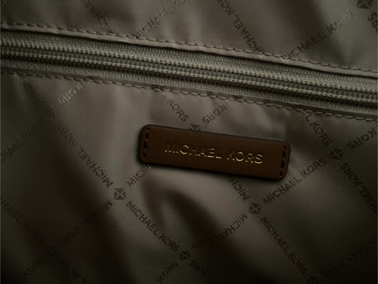 Selling a Michael Kors tote bag. It's in great condition and ready for a new owner! The bag features the classic MK logo pattern and has a spacious interior. Perfect for everyday use or as a stylish accessory.