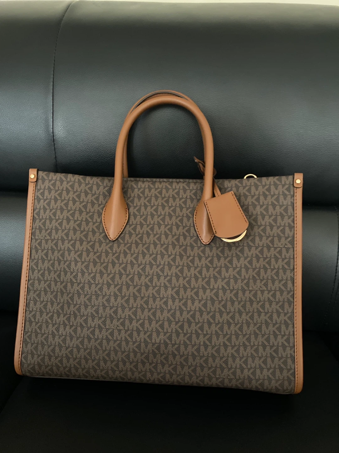 Selling a Michael Kors tote bag. It's in great condition and ready for a new owner! The bag features the classic MK logo pattern and has a spacious interior. Perfect for everyday use or as a stylish accessory.