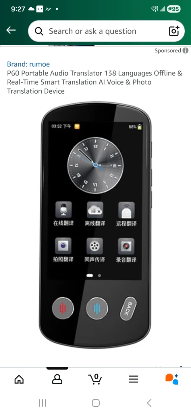 Selling a Rumoe P60 portable audio translator in excellent condition! This device supports 138 languages offline and offers real-time smart translation with AI voice and photo translation capabilities. It's perfect for travellers or anyone needing language assistance. Get yours today!