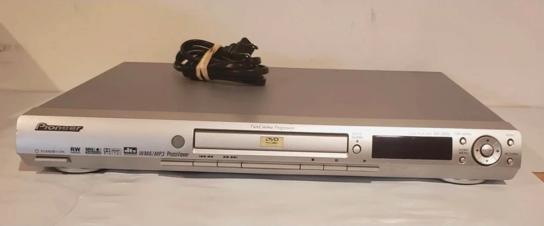 I'm selling a used Pioneer DVD Player, model number DV-260. It's a sleek, silver unit that has been thoroughly tested and is in working condition. Please note that the remote is not included.