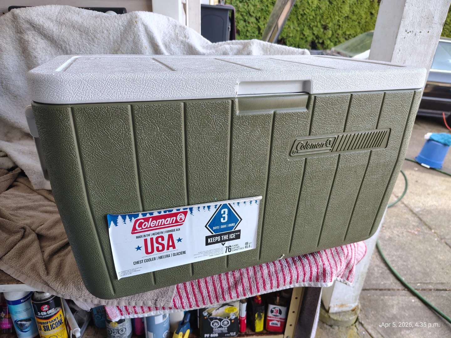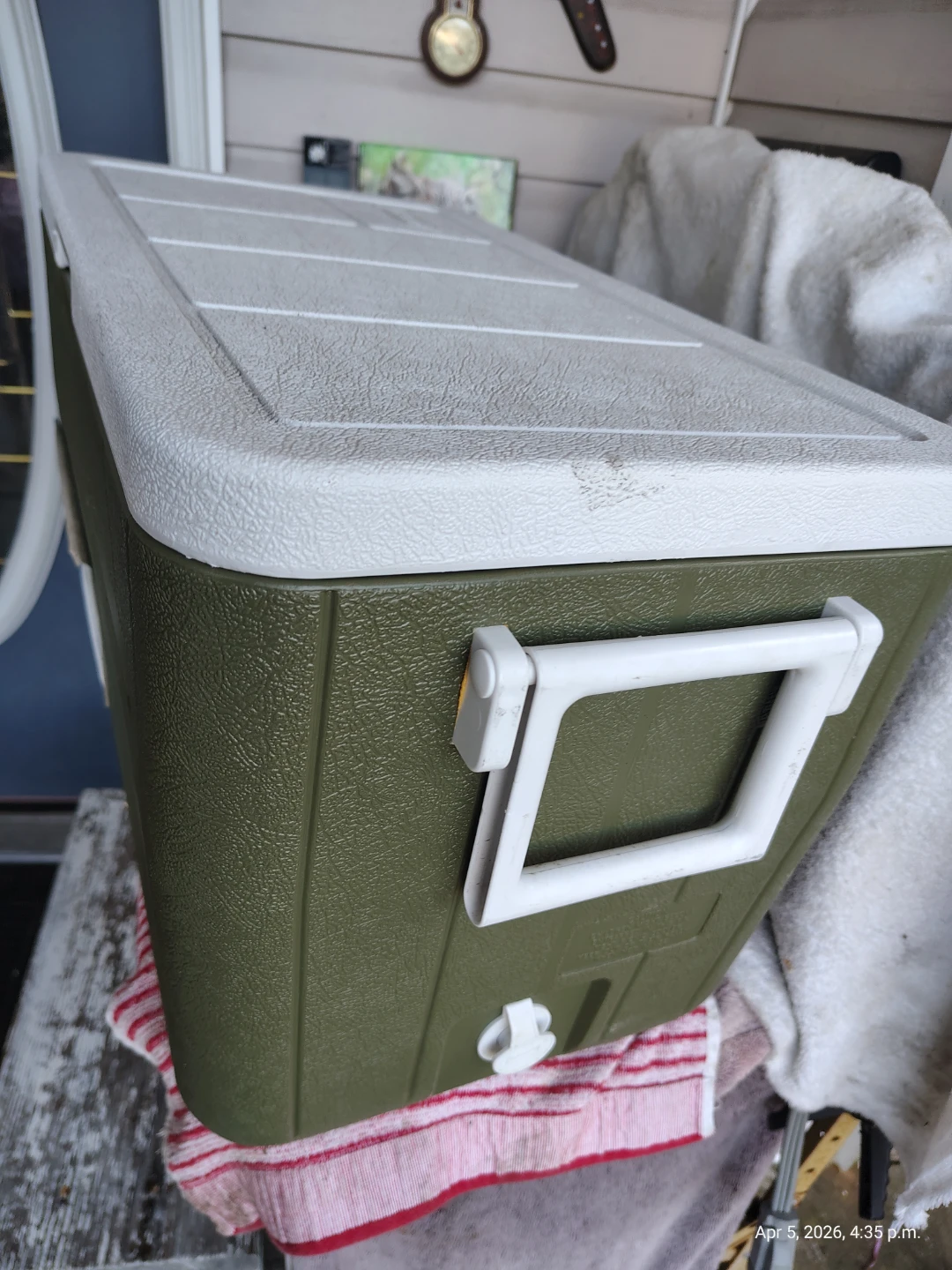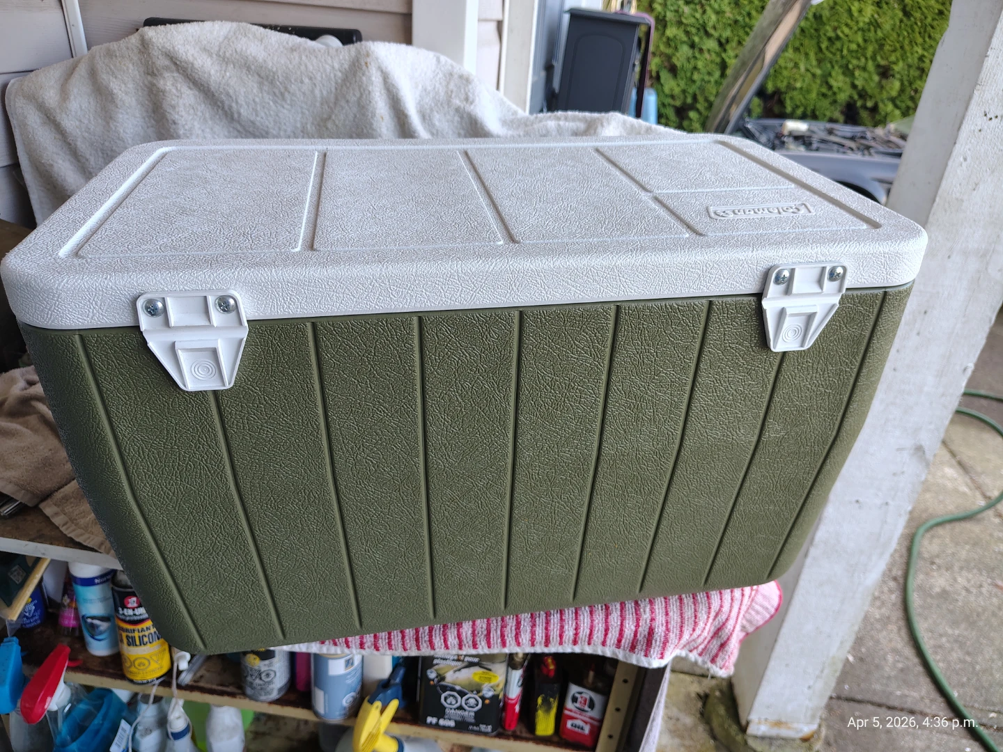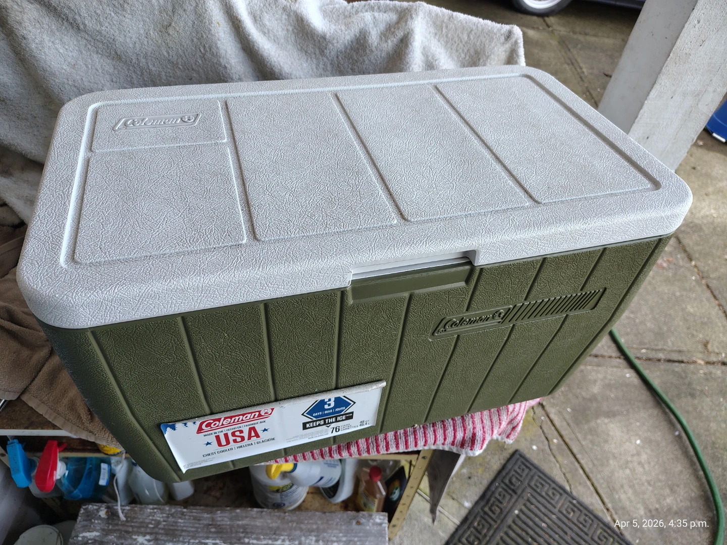 For Sale: Coleman 48qt arey Cooler with side drain, two way swivel handles. Hinged lid. Rare green color. Almost new condition🥕.