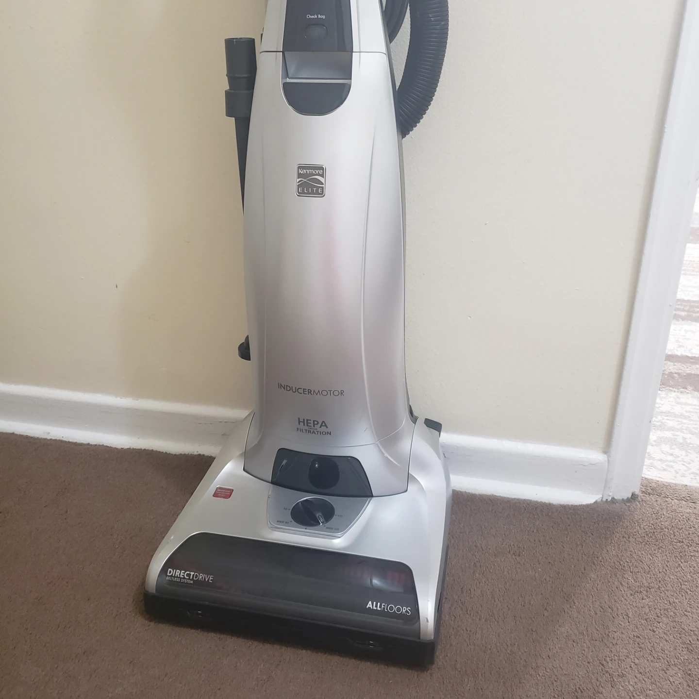 Kenmore Elite bagged upright vacuum cleaner. It features HEPA filtration for cleaner air. This vacuum is designed for all floors. Power cord and hose are included.