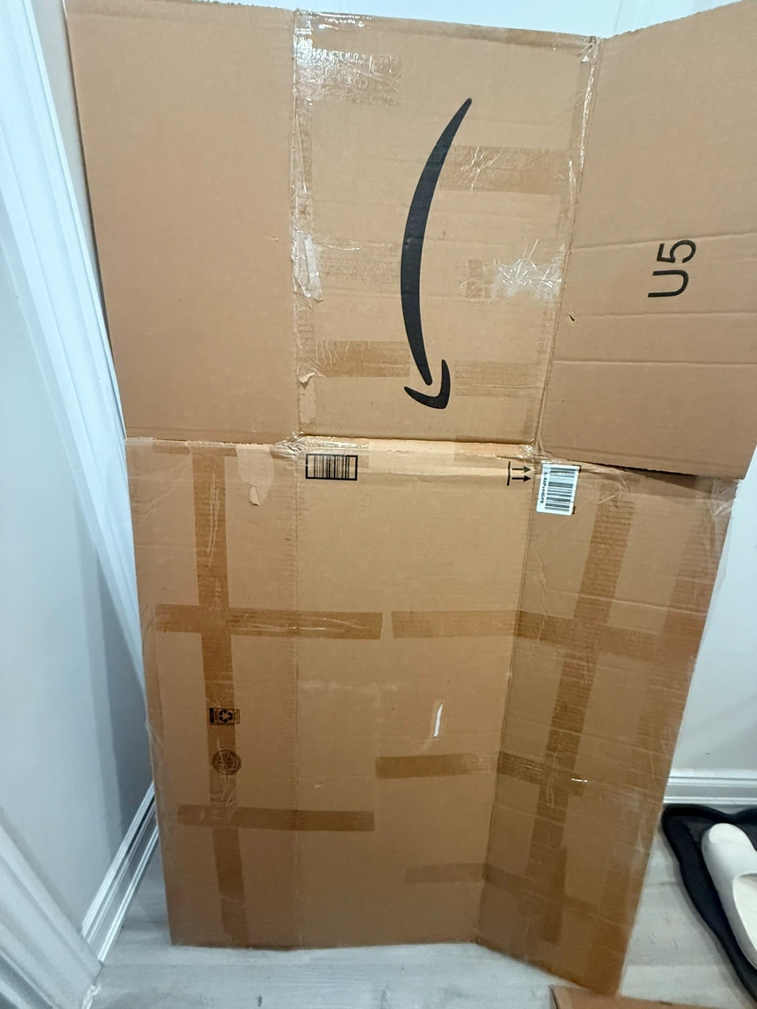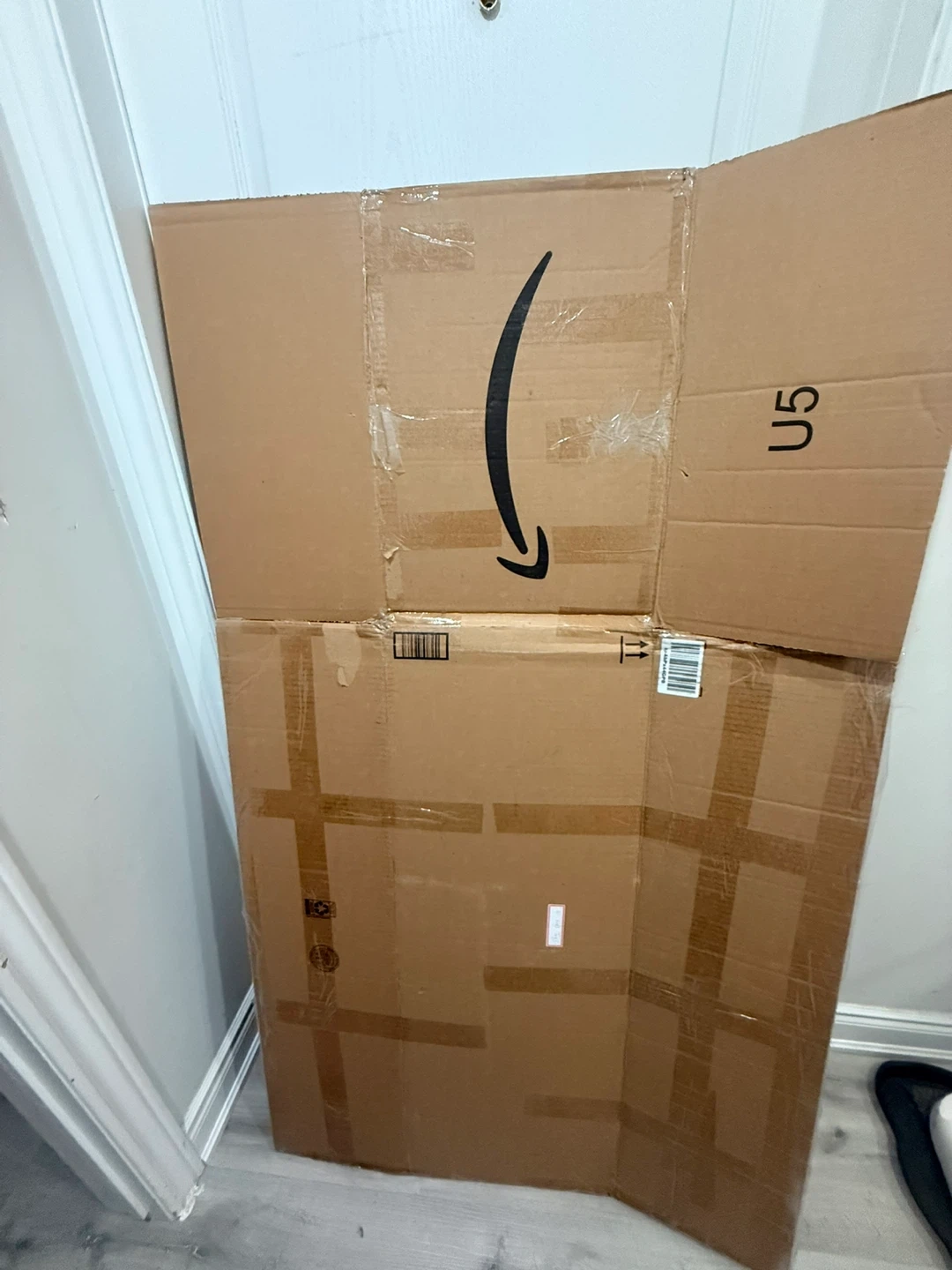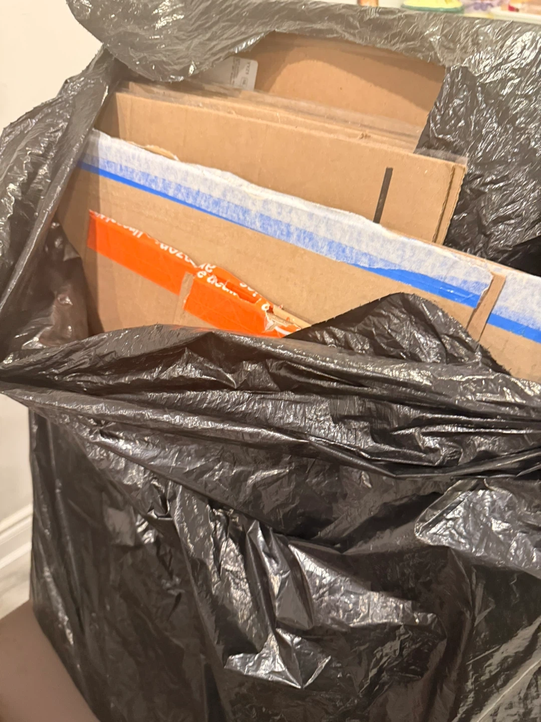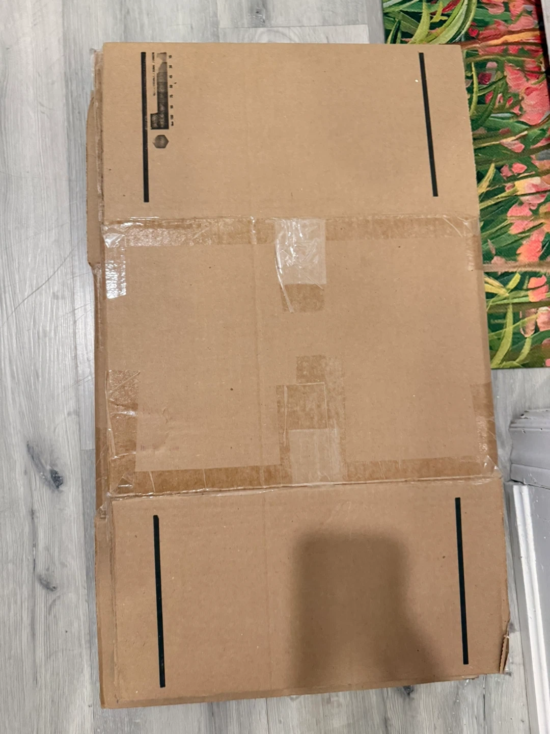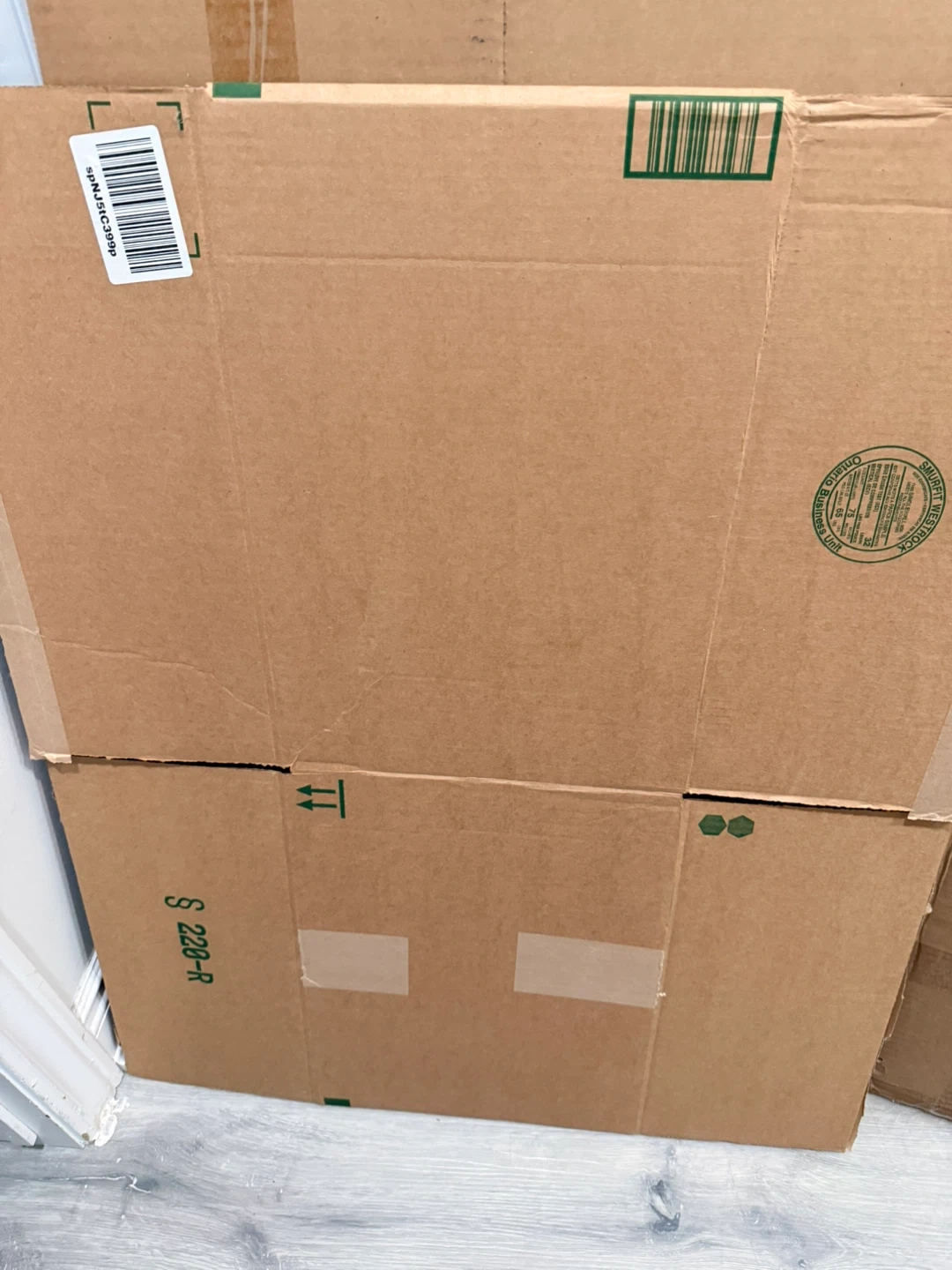 A collection of cardboard boxes. Various sizes are included. Some boxes have blue and orange tape. Ideal for moving or storage needs.