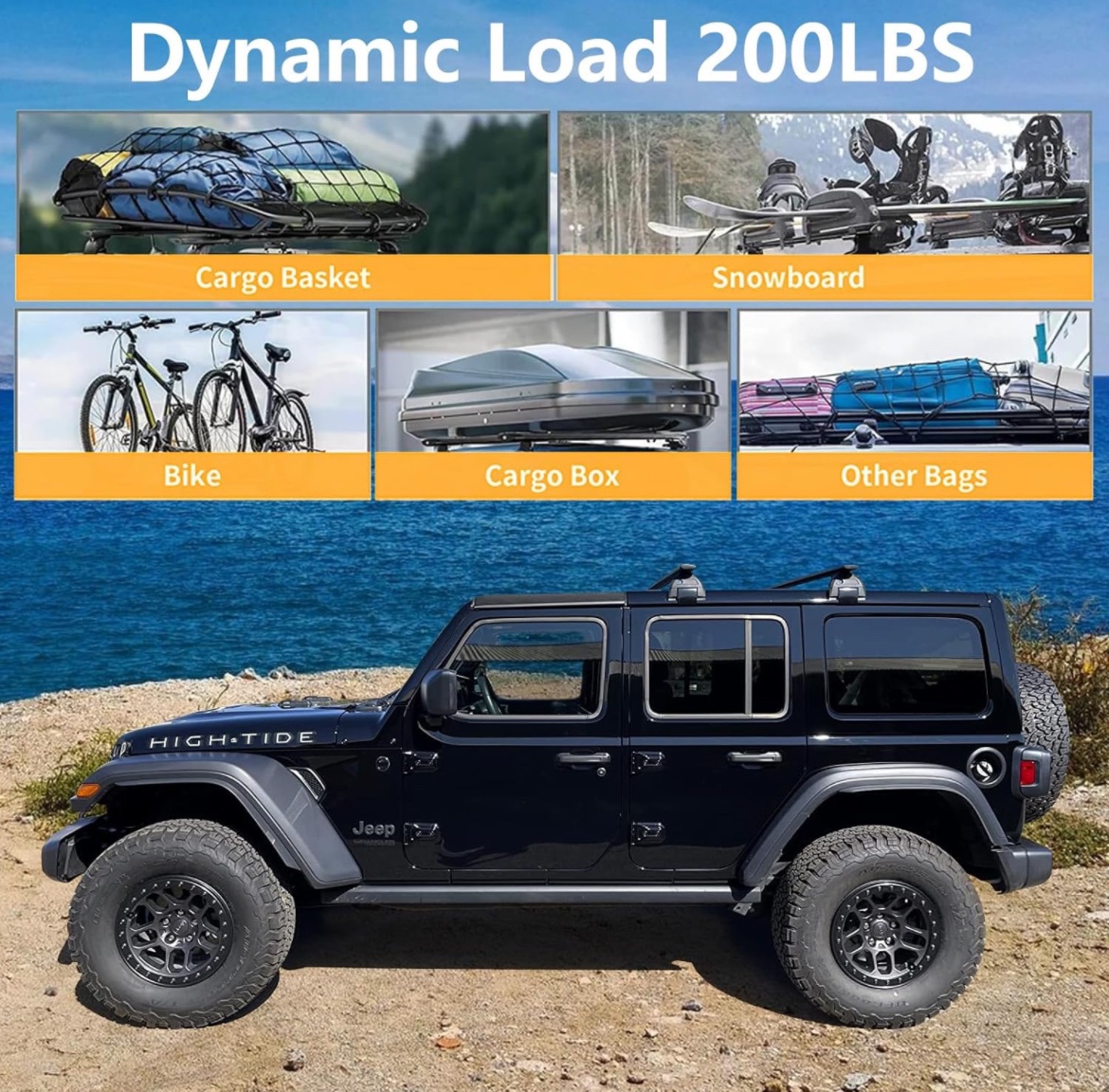 Roof Rack Cross Bars Compatible for Jeep Wrangler JK JL Gladiator JT 2007-2023 2&4-Door Hard Top,Aluminum Roof Rails Rooftop Storage Cargo Carrier for Kayak Bike Snowboard