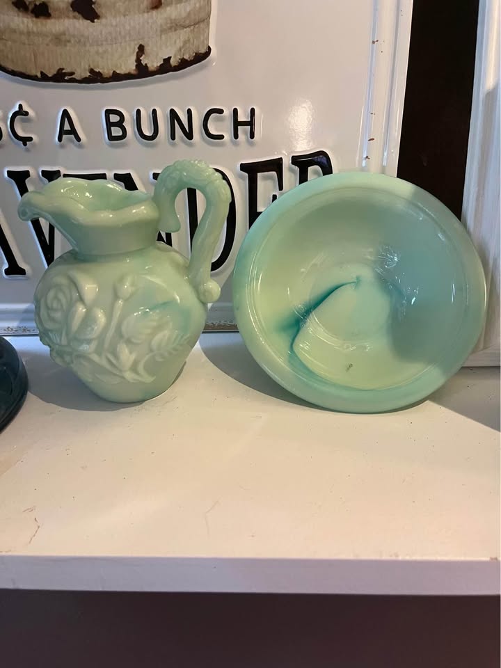 Jim Beam Green Jadite Slag Glass 1972 Promo Liquor Bottle / Decanter - Milk Gass