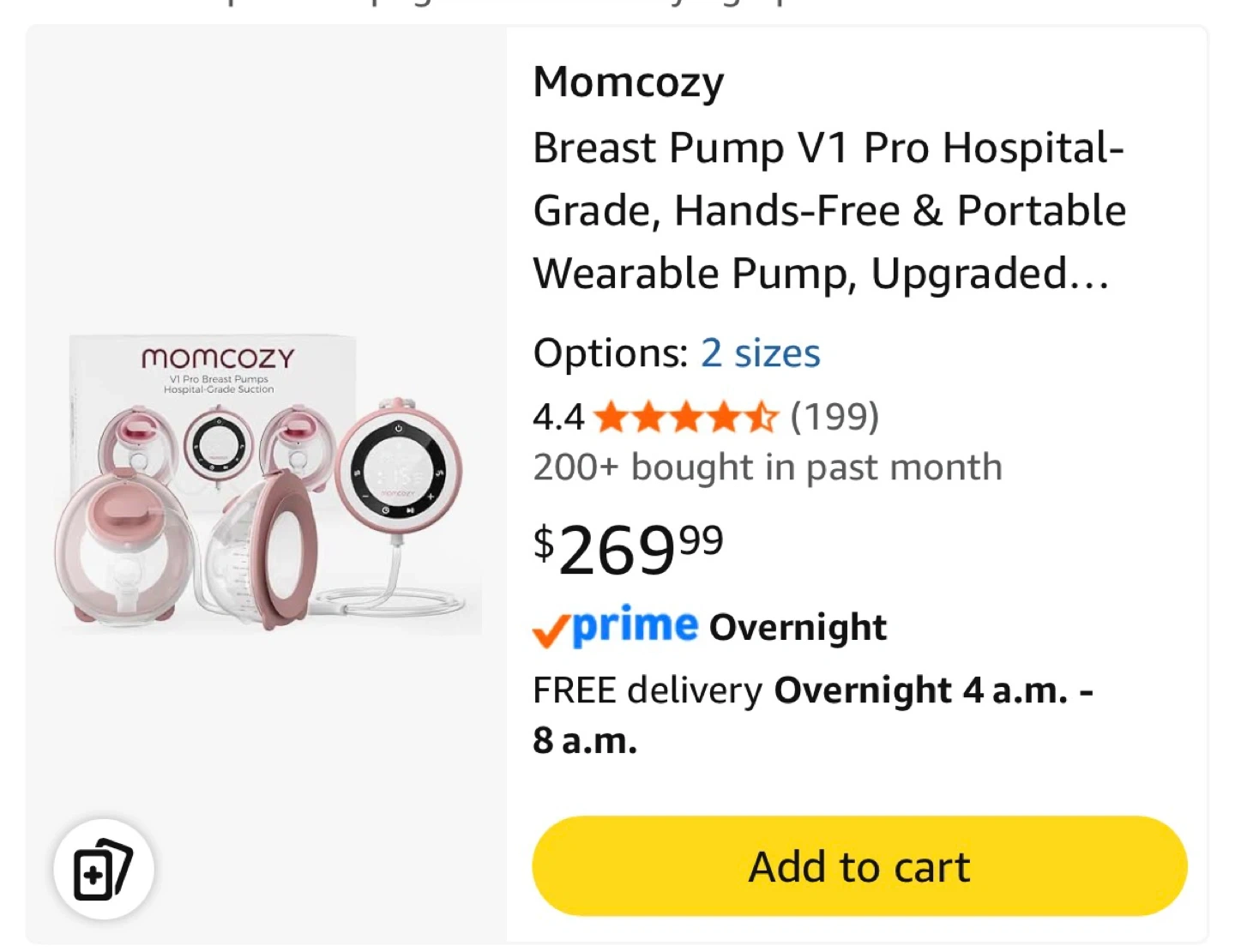 Momcozy V1 Pro portable double breast pump. Wearable, hands-free design with 2 modes and 15 precision levels. Hospital-grade suction performance. It's lightweight and rechargeable for on-the-go use.