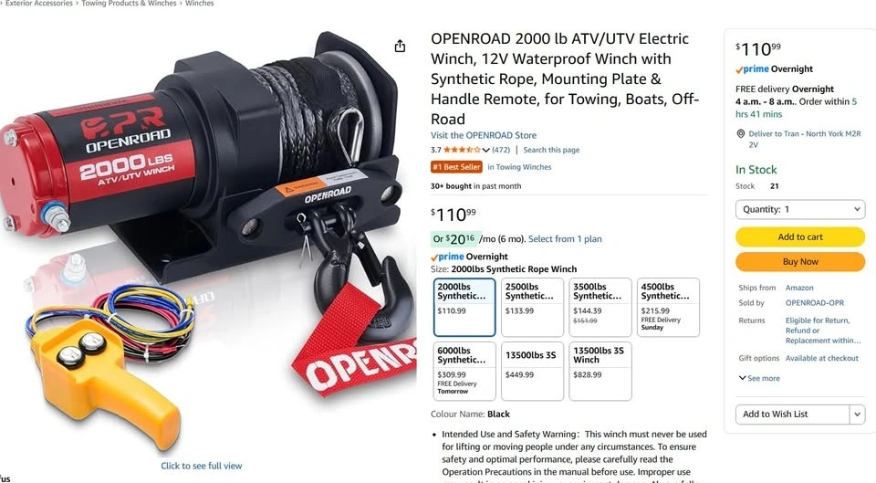 Buy & Sell*NEW* OPENROAD 2000 lb ATV/UTV Electric Winch*NEW* OPENROAD 2000 lb ATV/UTV Electric Winch$80OPENROAD 2000 lb ATV/UTV Electric Winch, 12V Waterproof Winch with Synthetic Rope, Mounting Plate & Handle Remote, for Towing, Boats, Off-Road.WHERE TO MEETCheck LocationView MapSELLERverifiedDealDockJane and Finch995 reviews0 chats·0 favorites·12 viewsSEND CHAT TO SELLERHi DealDock! I’m interested in your listing.Hi DealDock! I’m interested in your listing.Get the Karrot app to chatSign In to chat