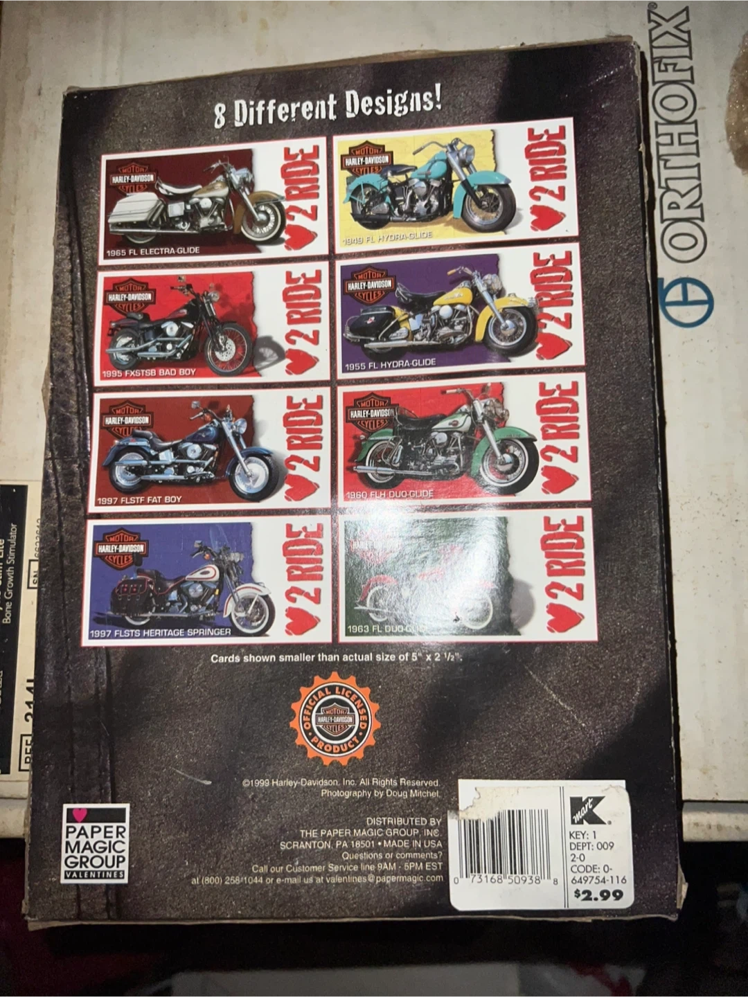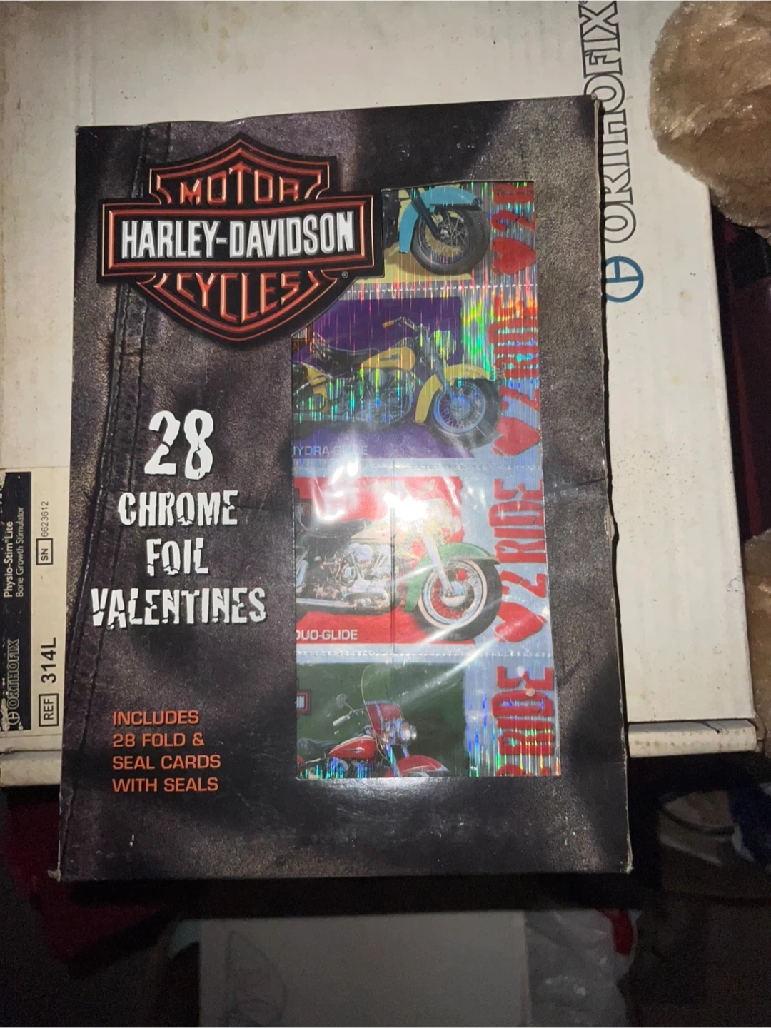Selling a brand new pack of 1999 Harley-Davidson Valentines cards! The pack includes 28 chrome foil valentines with seals. There are 8 different designs included in the pack. Original packaging never opened purchased in 1999.
