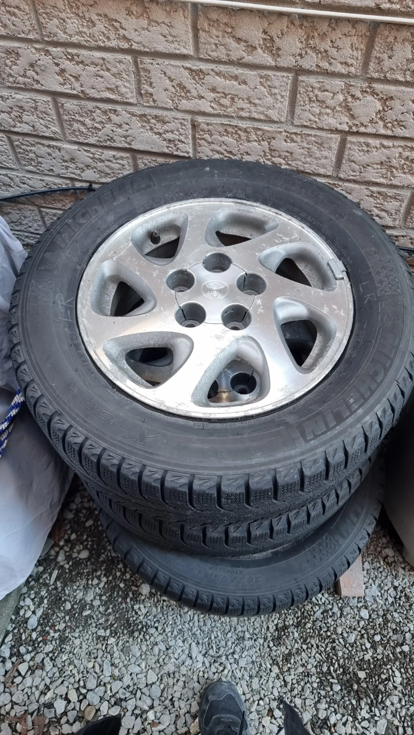 Four Michelin X-ice winter tires with wheels fit on Toyota Camry. Bolt pattern is 5x114.3mm. The tire size is 205/55 R15. Selling the wheels which comes with tires.
