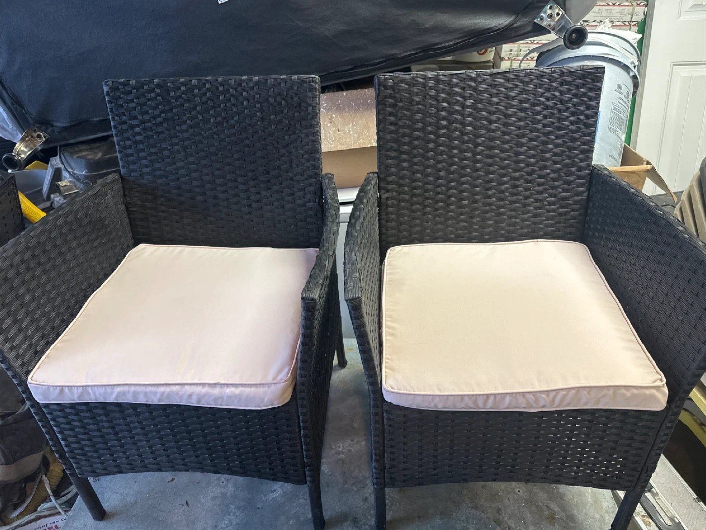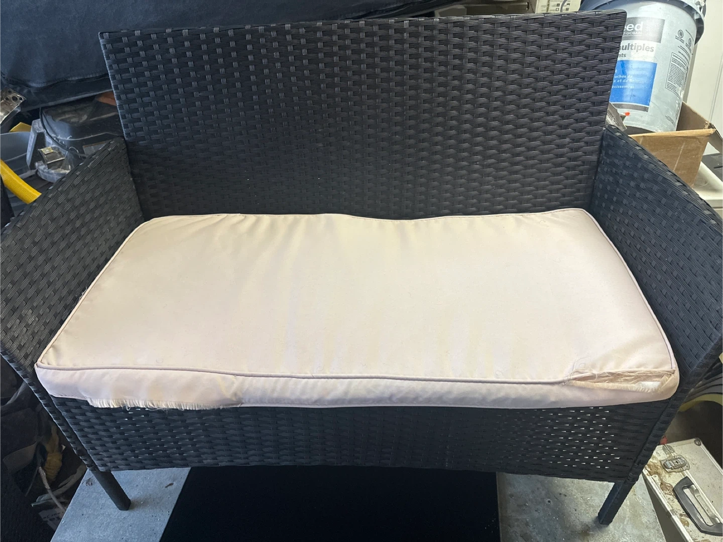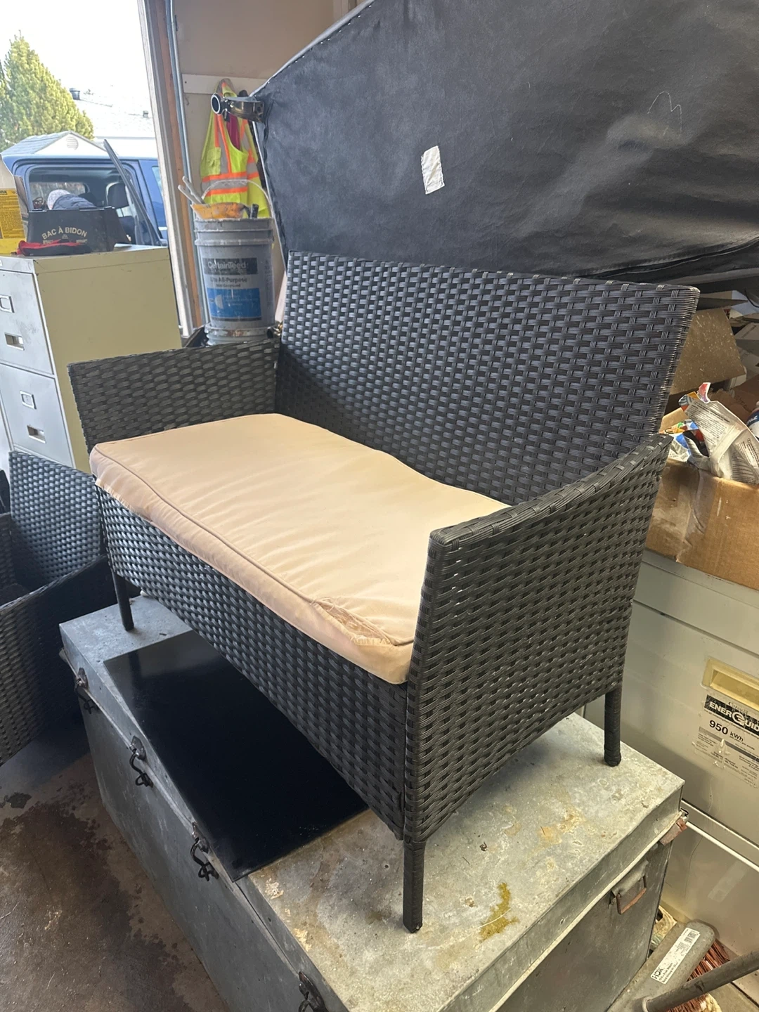 Selling a lovely wicker patio set that includes a loveseat and two chairs. The set is in great condition and perfect for enjoying the outdoors. The cushions are a neutral colour. This set would be a great addition to any backyard or patio!