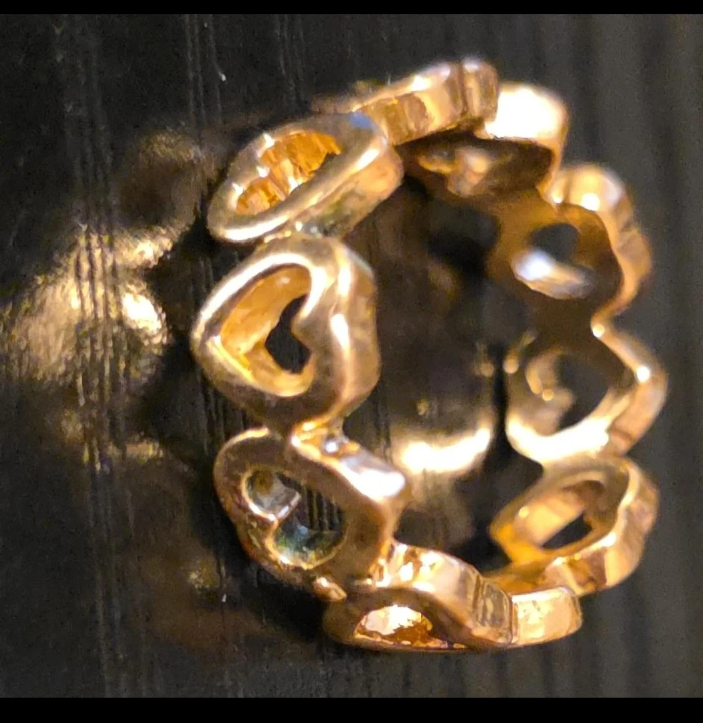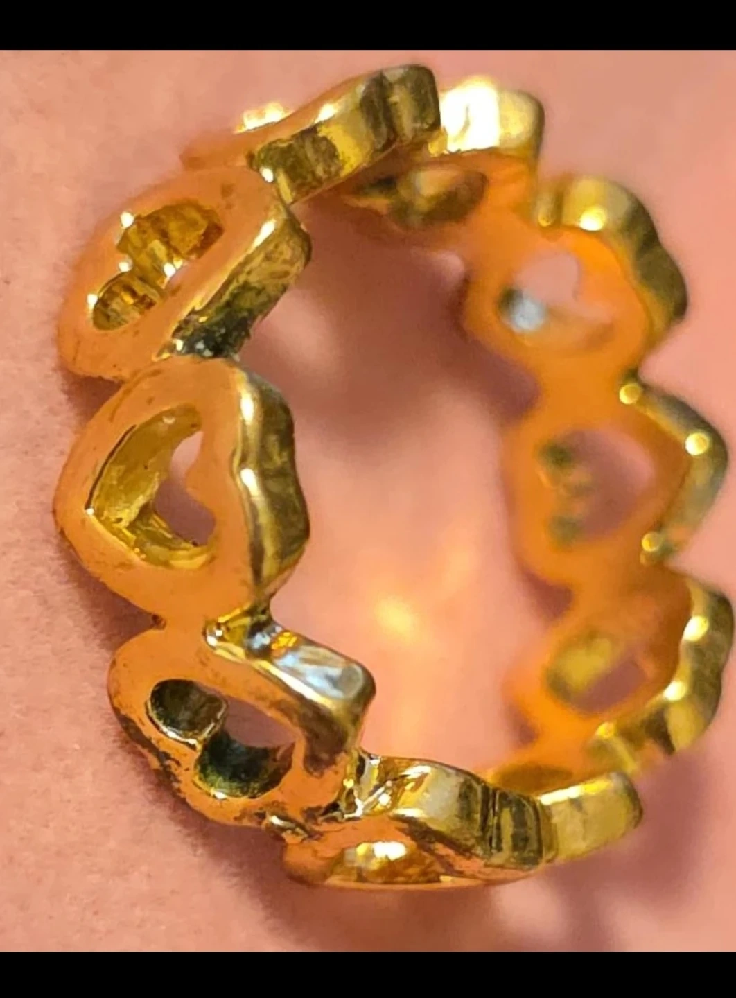 I'm selling this super cute, dainty gold-tone ring. It features a continuous "eternity" band design made entirely of linked open hearts.