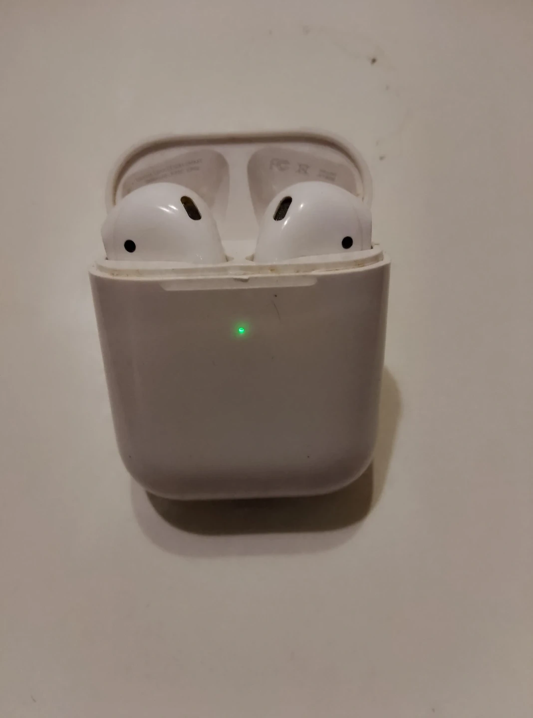 White Apple AirPods (2nd generation) with charging case. They're wireless and offer a convenient way to listen to music or take calls. Includes AirPods and charging case.# Left side is not working #
