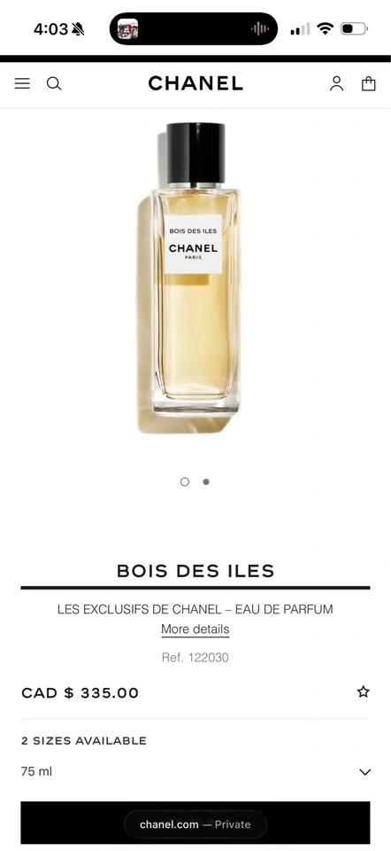 Buy & SellChanel Bois Des Iles 75mlChanel Bois Des Iles 75ml$229Chanel Bois Des Iles, 74/75ml remaining. Pickup downtown Toronto.WHERE TO MEETCheck LocationView MapSELLERverifiedJNWaterfront Communities861 review2 chats·3 favorites·21 viewsSEND CHAT TO SELLERHi JN! I’m interested in your listing.Hi JN! I’m interested in your listing.Get the Karrot app to chatSign In to chat
