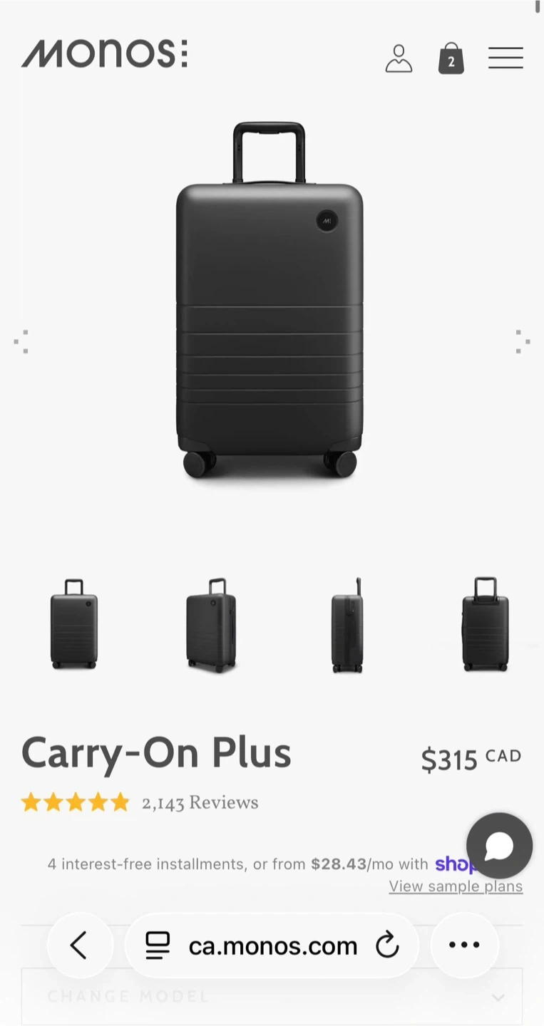 Monos Carry-On Plus Luggage - Black