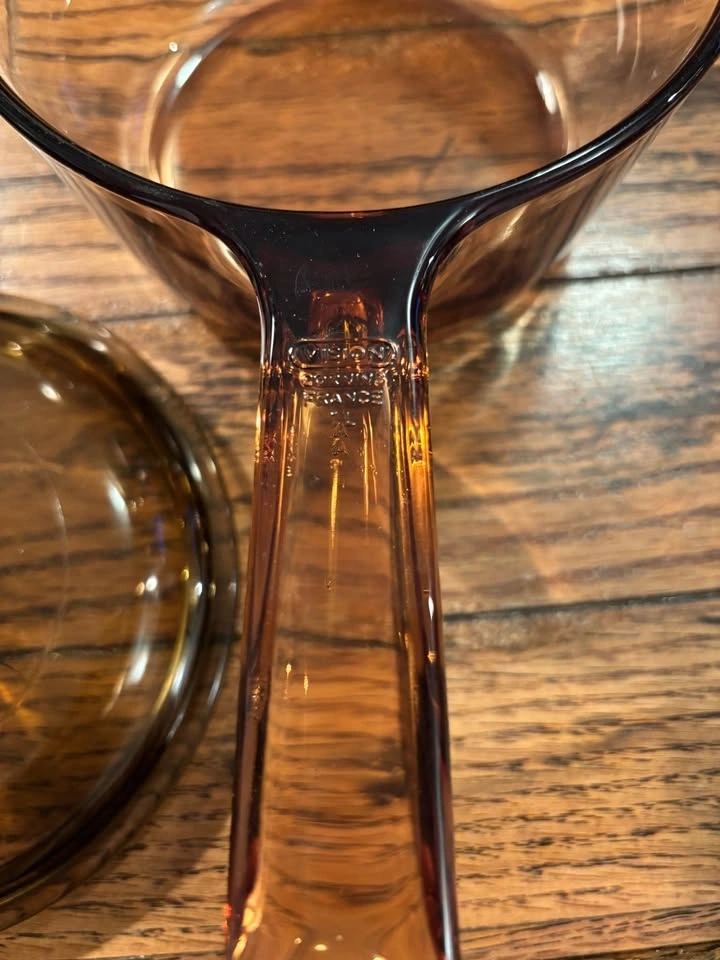 Excellent condition, like new. Corningware Visions clear cookware in Amber. Very heat shock resistant, hardy cookware. Selling together for $80, or can purchase separately. The larger pot is 2.5L with dual handles (no lid). The smaller pot is 1.5L with matching lid. There is also a separate lid, likely for a 2L saucepan. The larger pot is $45, the smaller pot is $40, and the extra lid is $5. No chips or cracks on any items.
