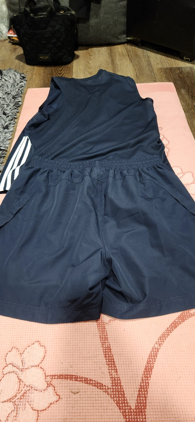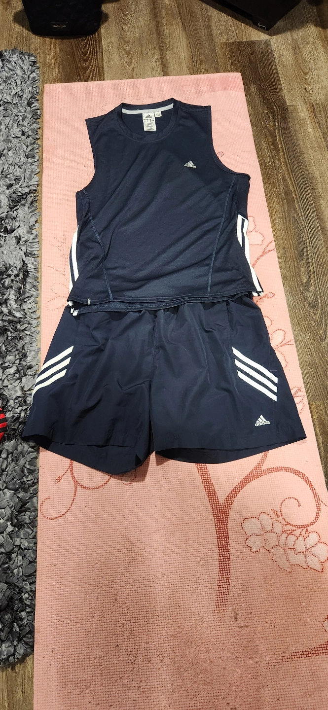 Get ready to hit the court or track with this Adidas athletic set, perfect for any workout. The set includes a size large tank top and shorts, both in excellent condition, ready for action. This stylish and functional outfit will have you looking and feeling great while you push your limits.