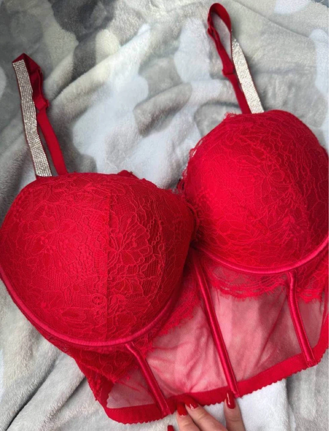 Victoria's Secret Red Lace Corset push up, 38 DD(E)