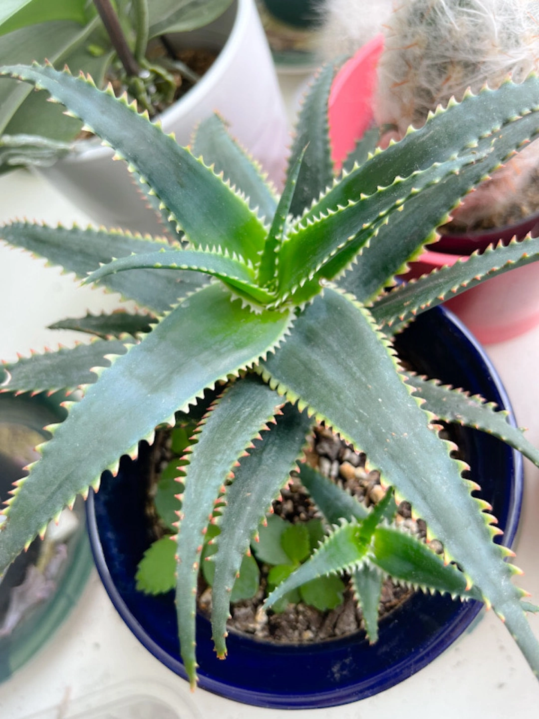 💚Aloe Coral Fire in 5 & 1/2” navy blue ceramic pot for trade
