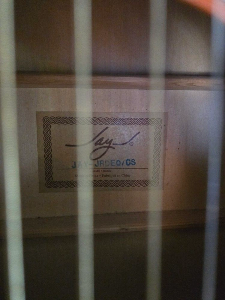 Used condition, could use a new set of strings and a set up. Very nice bound neck with a rosewood fretboard. Size: 4/4. Type: Acoustic/Electric. Brand: Jay Turser.