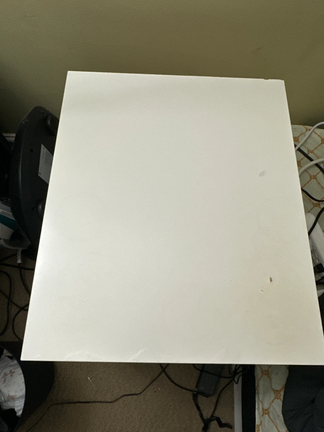 This is a white IKEA STORKLINTA nightstand with two drawers. It's 50x48x53 cm (19 5/8x18 7/8x20 7/8 "). It's a great addition for bedside storage.