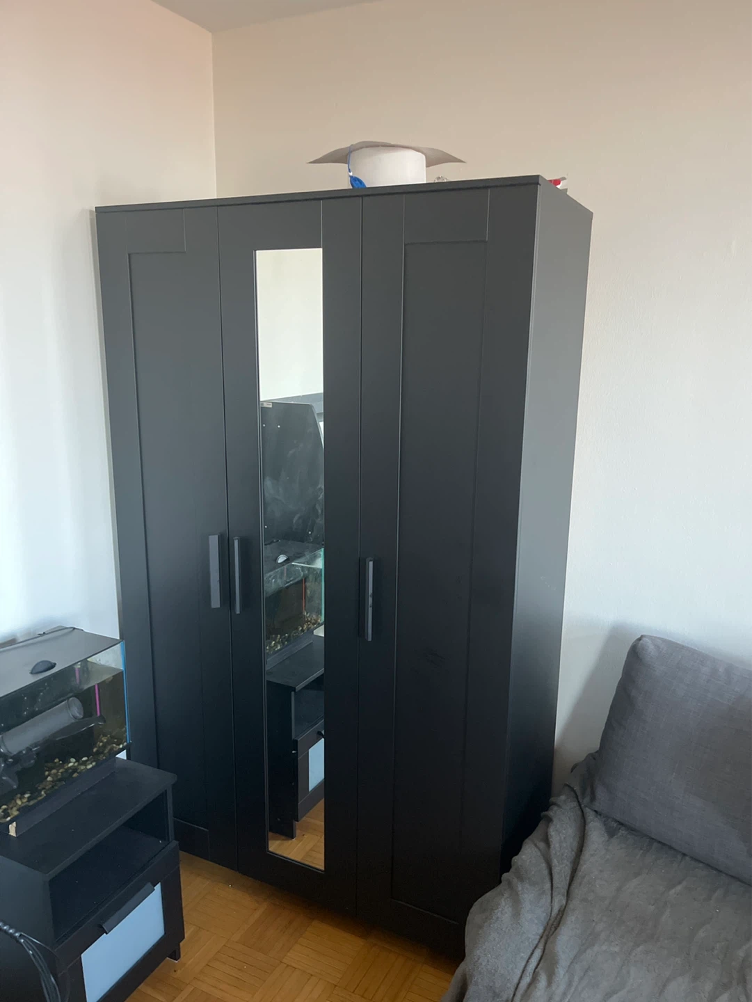 Black 3 Door Wardrobe with Mirrors
