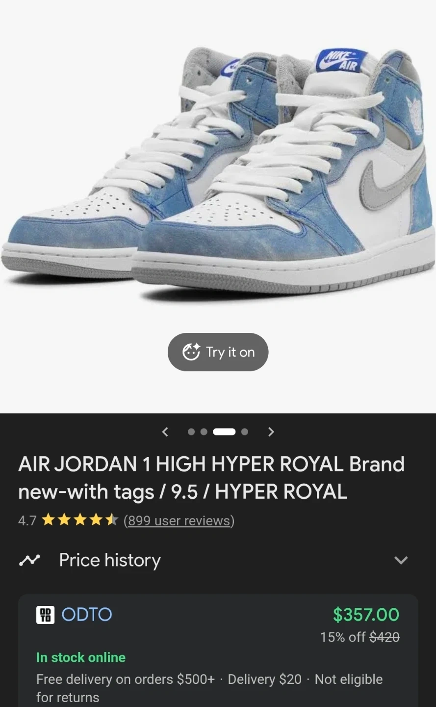 Jordan 1 high hyper royal Size 6.5Y
