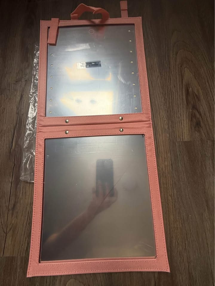 25 x 11.5 inches BRÜUN Foldable Hangable Mirror with Dimmable LED Lights - Pink