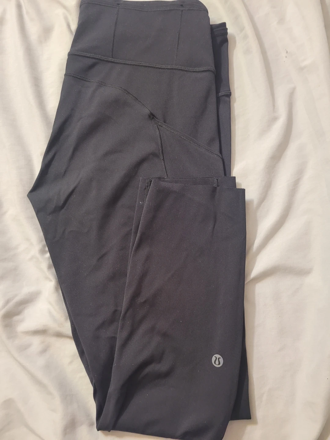 Black Lululemon leggings. These are made from a comfortable, stretchy fabric. They're great for workouts or casual wear.