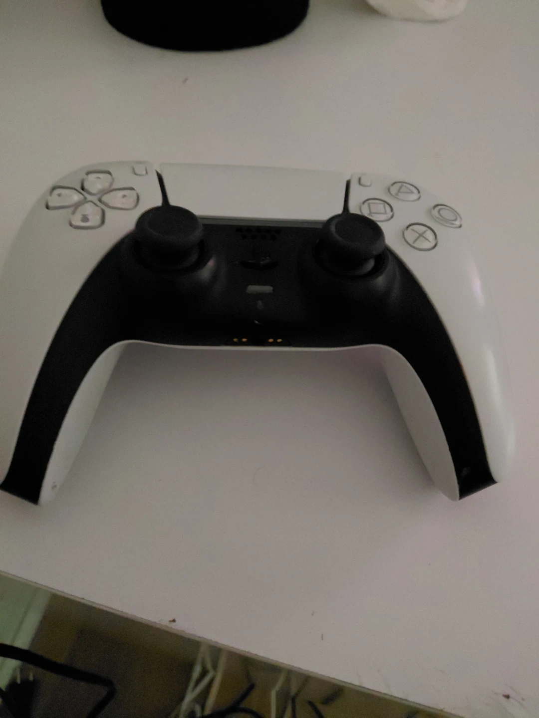 This is a white Sony DualSense wireless controller for the PlayStation 5. It has a black and white design. Its ergonomic shape is built for comfort during long gaming sessions. Perfect for any PS5 gamer! If you interested texte at 647 857 3887 and I don't do no delivery