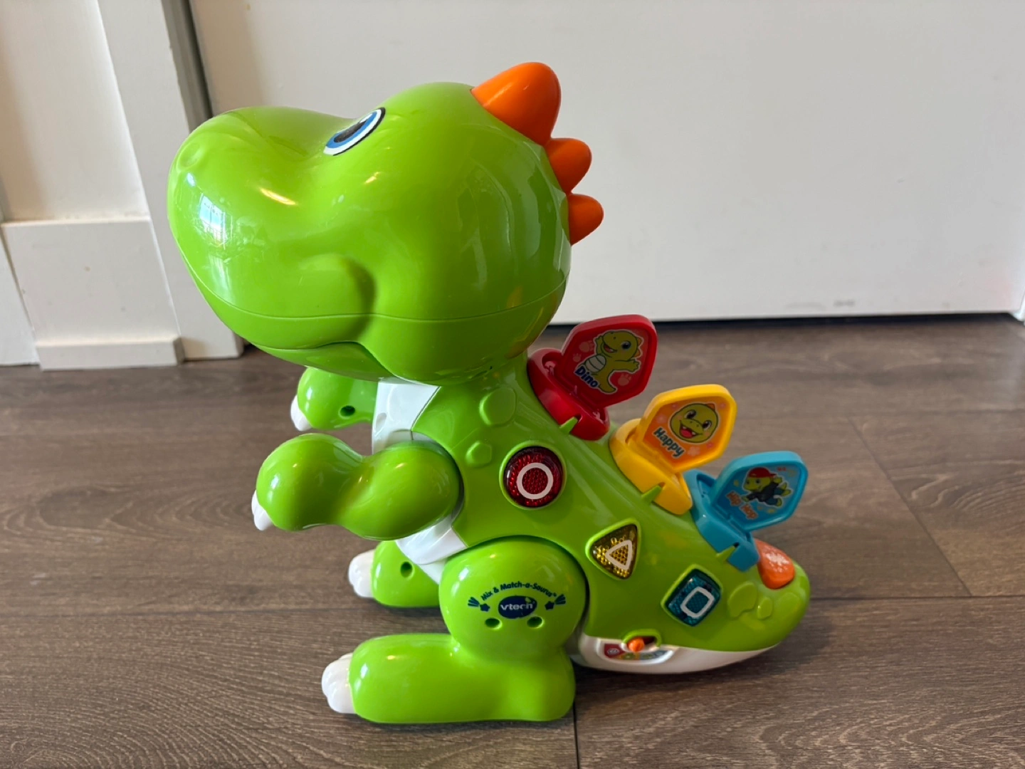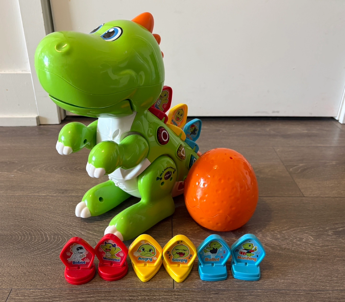 Includes 9 action plates that customize Dino’s voice style (dino, robot, or monster), emotions (happy, angry, or sleepy), and dance styles (ballet, marching, or hip-hop). Comes with the dino egg for storing the plates.