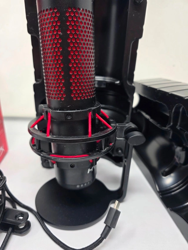 Pre-owned HyperX QuadCast microphone. Comes with box, stand, USB cable, and mount adapter.
