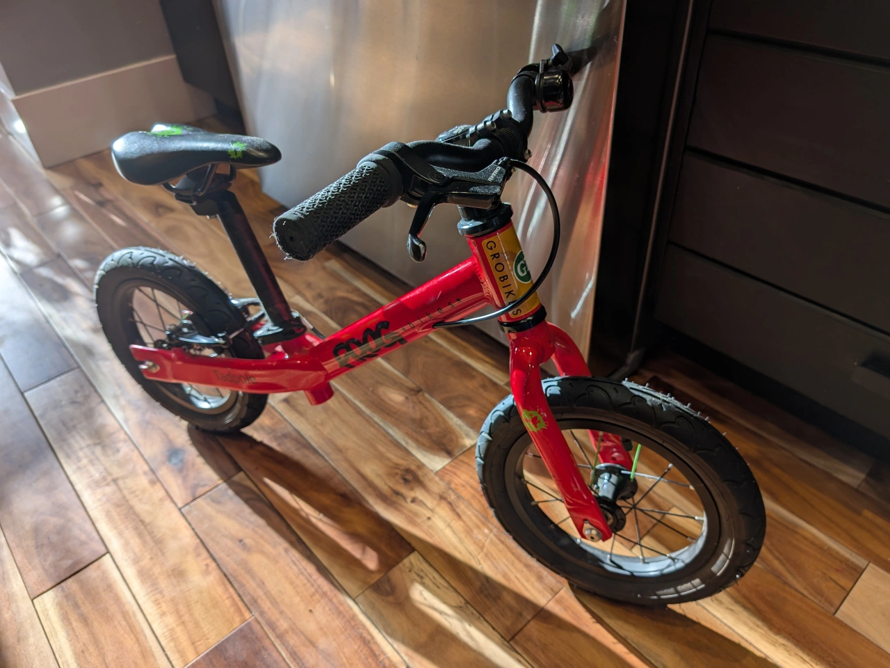 The best bike to learn on. Lightweight aluminum frame. Easy to manoeuvre. Height adjustable seat and brake levers. Chunky tyres for grip. Suitable for 2-4 year olds.