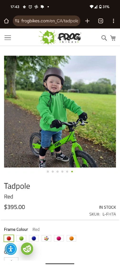 Frog Bikes Tadpole Balance Bike - Red - 12 inch