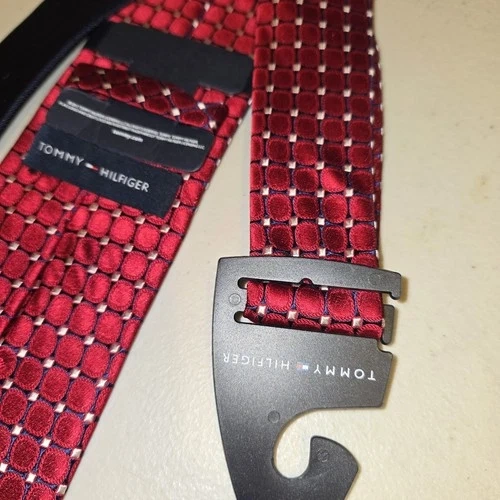 Tommy Hilfiger Silk Tie Red & Blue Geometric Square NWT New