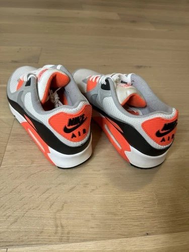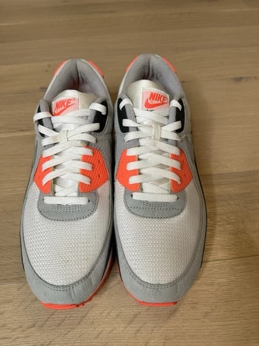 The Nike Air Max 90 Infrared sneakers in men's size 13 are a stylish and comfortable choice for everyday wear. Featuring a multicolor design with the iconic Nike Swoosh, these athletic shoes are part of the popular Nike Air Max product line. The sneaker's classic silhouette and Air Max technology provide both support and cushioning for all-day comfort.