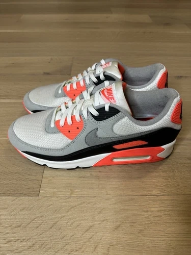 The Nike Air Max 90 Infrared sneakers in men's size 13 are a stylish and comfortable choice for everyday wear. Featuring a multicolor design with the iconic Nike Swoosh, these athletic shoes are part of the popular Nike Air Max product line. The sneaker's classic silhouette and Air Max technology provide both support and cushioning for all-day comfort.