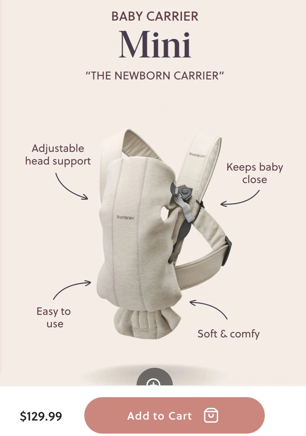 Created especially for newborns, Baby Carrier Mini is soft, snug and easy to use :