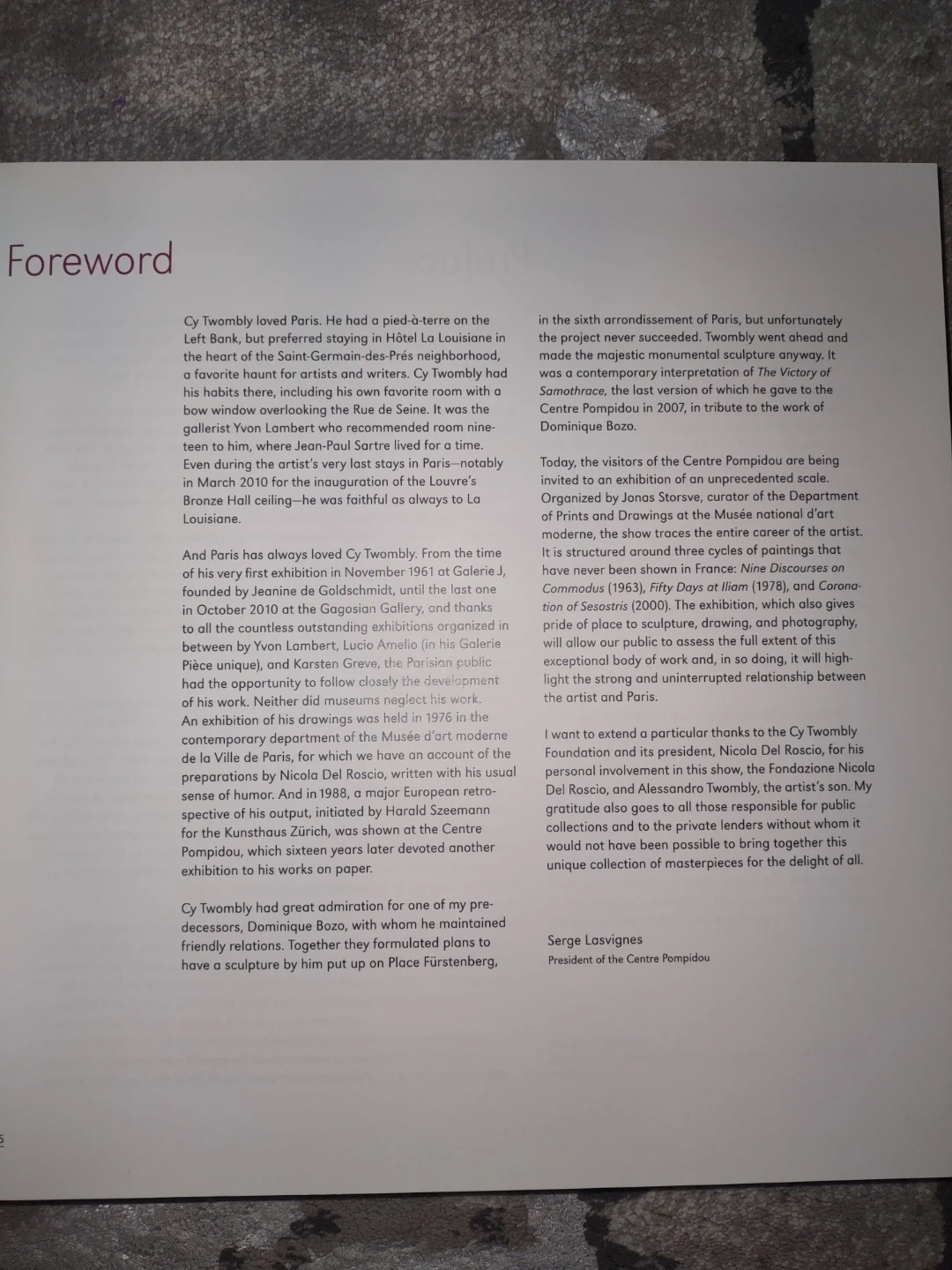 This is a book about the artist Cy Twombly, edited by Jonas Storsve and published by Sieveking Verlag. It details his work and exhibitions. A foreword by Serge Lasvignes, President of the Centre Pompidou, is included.
