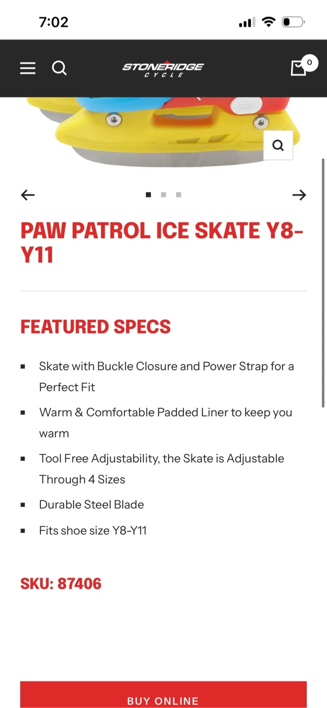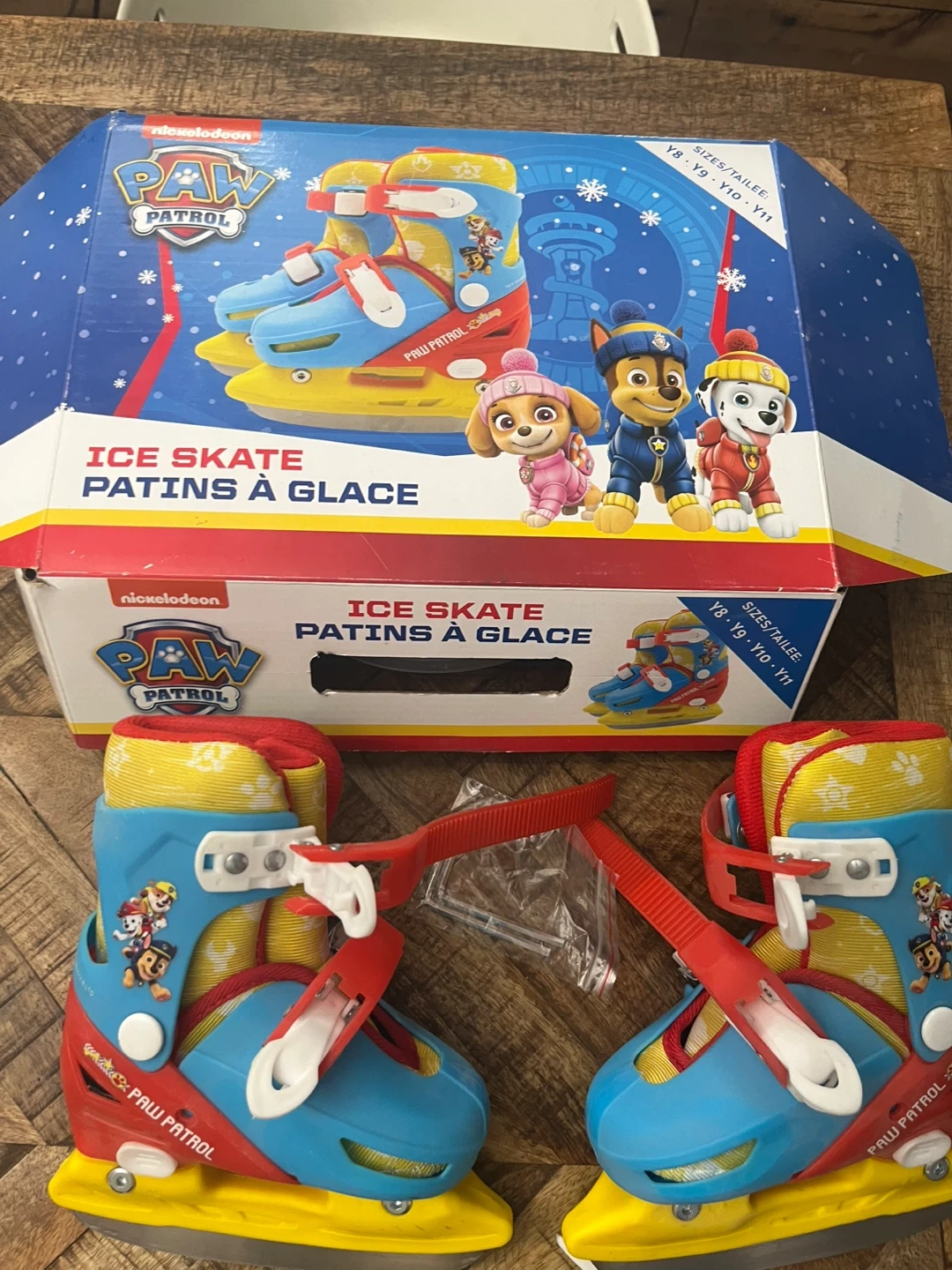 Nickelodeon Paw Patrol ice skates and helmet set for kids! The skates are adjustable y8-y11 and come with a helmet featuring Paw Patrol characters. This set is perfect for young fans learning to skate. Skates have been sharpened and are ready to use. Never used.