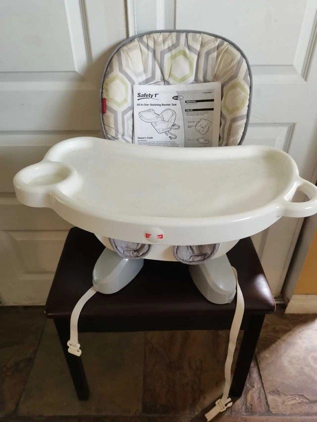 Elevate your little one's dining experience with the Safety 1st All-in-One Reclining Booster Seat, designed to securely attach to a dining chair and provide a comfortable and safe seating option for meal times. This booster seat features adjustable straps, a removable tray, and a reclining backrest for added comfort.