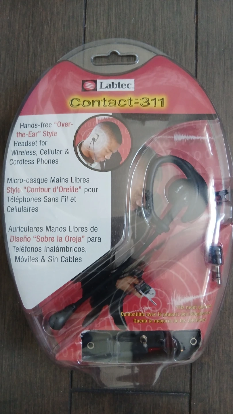 This Labtec Contact-311 headset offers a comfortable 'over-the-ear' design for hands-free use. It's compatible with most wireless, cellular, and cordless phones. The headset connects via a standard 2.5mm jack.