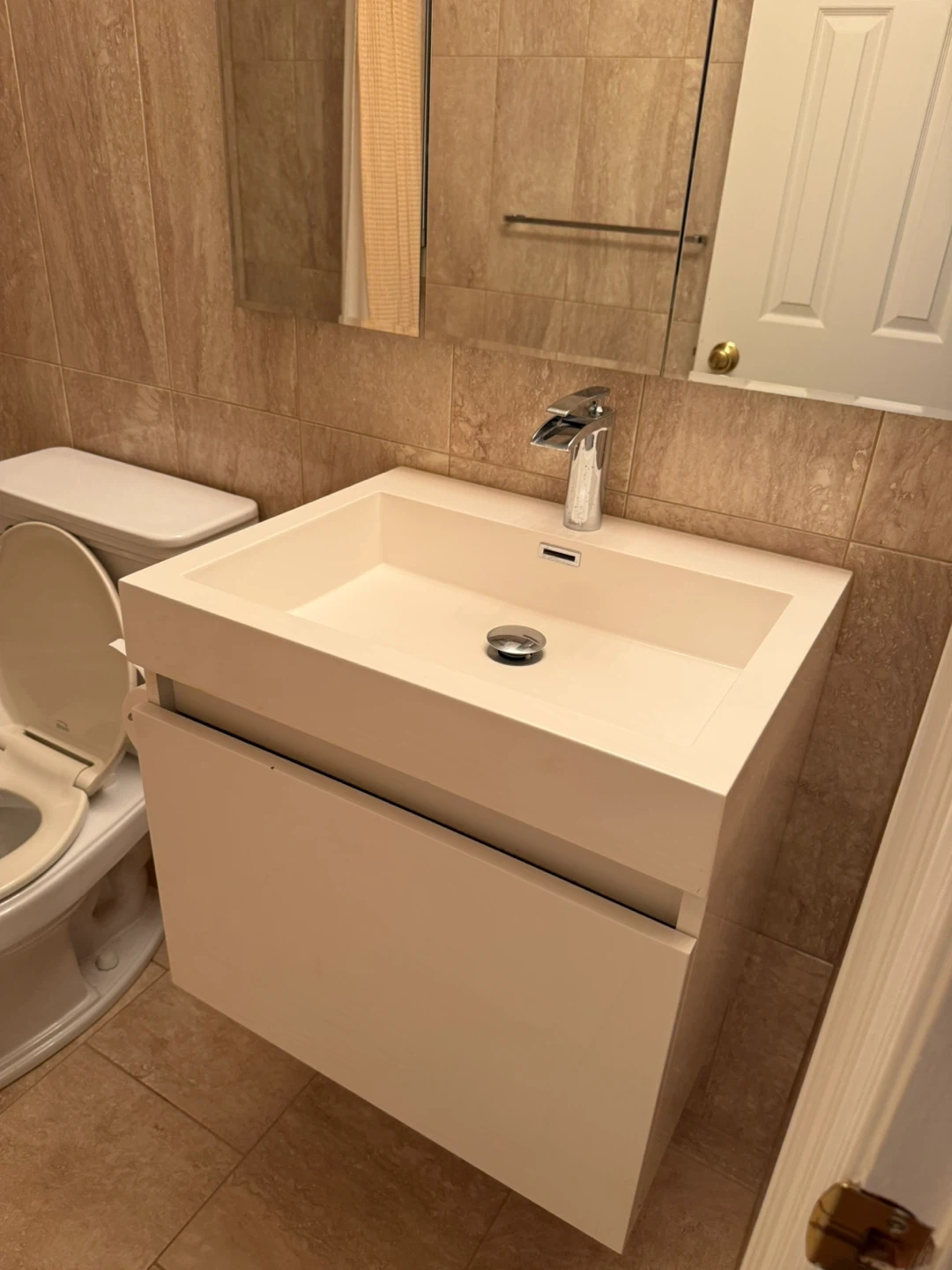 White Floating Bathroom Vanity with Faucet