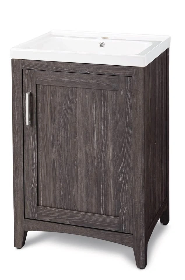 Stylish vanity for your bathroom. Espresso finish with a white ceramic sink. Includes cabinet for storage. Measures 24 inches wide, 18 1/4 inches deep, and 34.5 inches high. Faucet is not included.